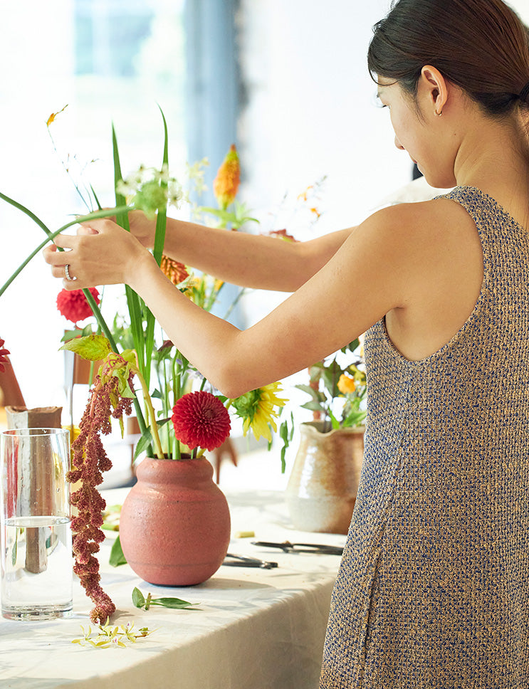 今回のワークショップでは若井さんのアドバイスをお借りし、”普段とはまた違った目線でお花を捉え、花器を活かす” ことをテーマに設けられた機会。
