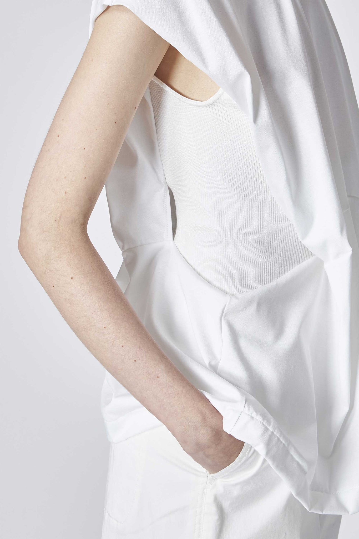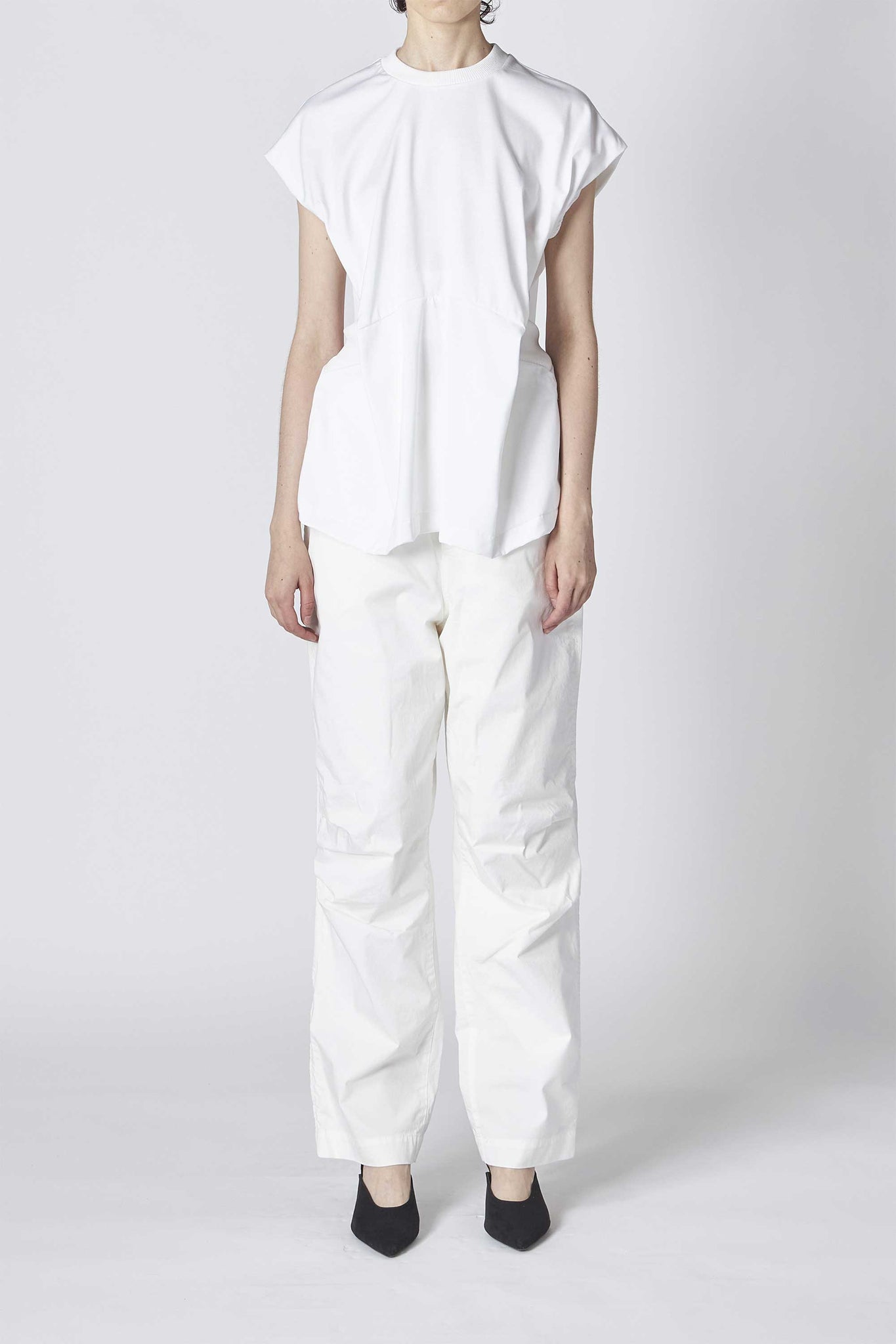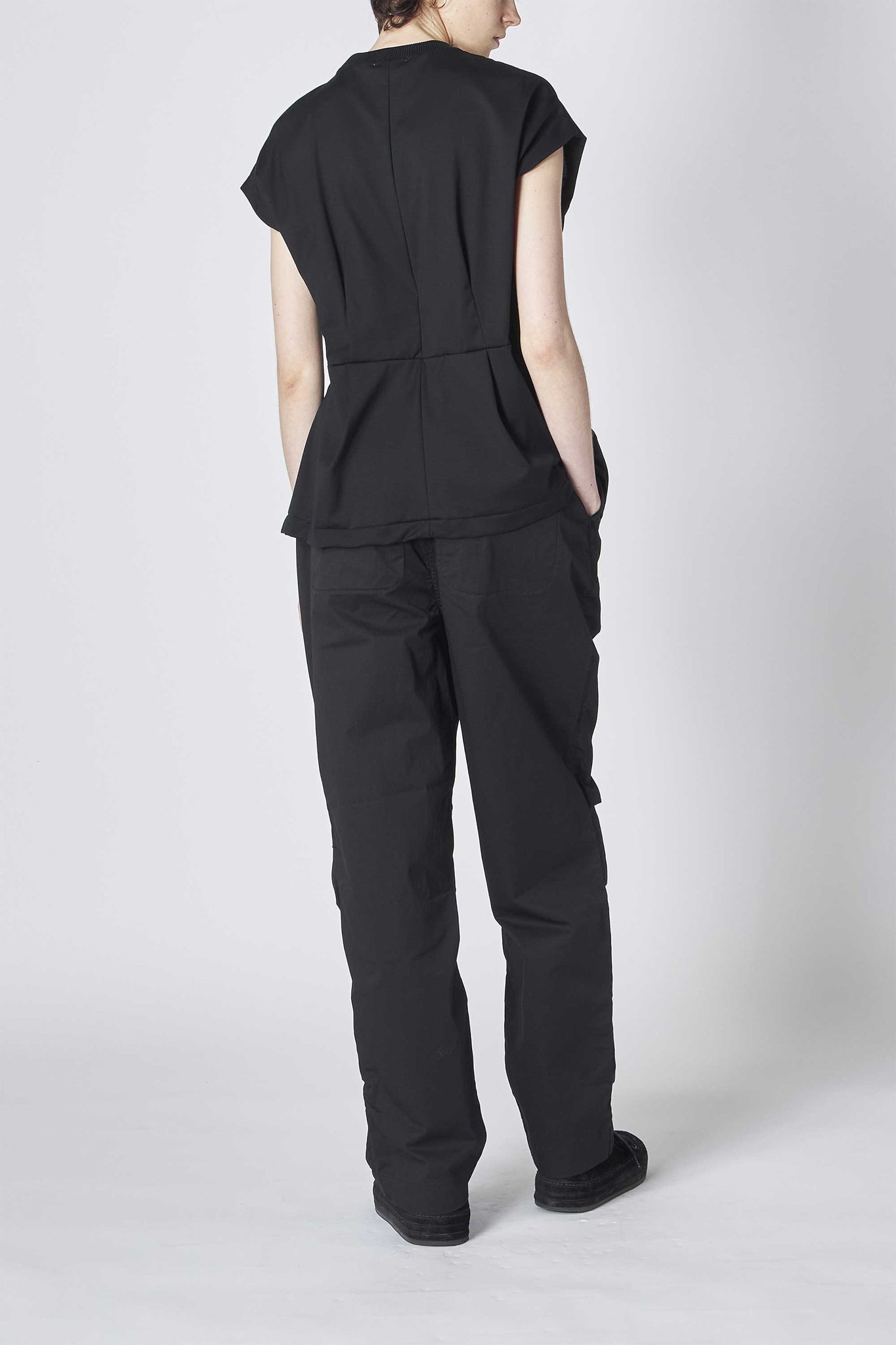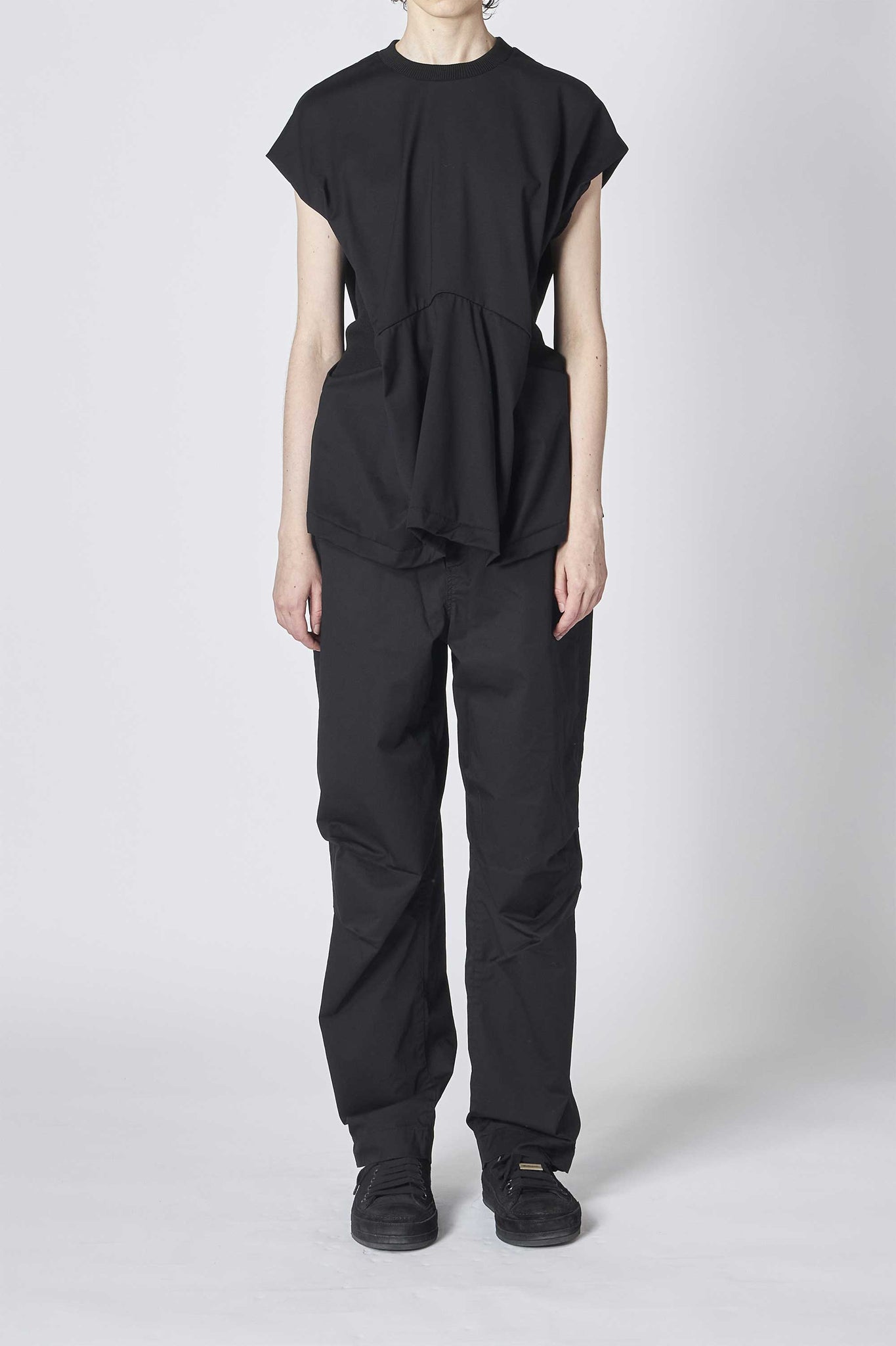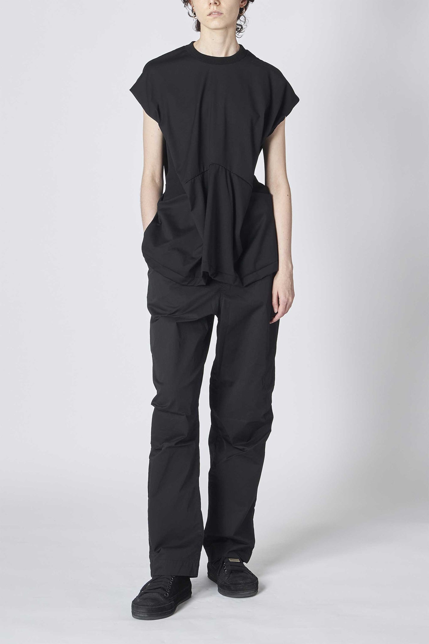 ウエスト部分のリブの切り替えは伸縮性が高く、フィット感が心地よく身体に優しく沿いながらメリハリのあるシルエットを作り出してくれる1着です。