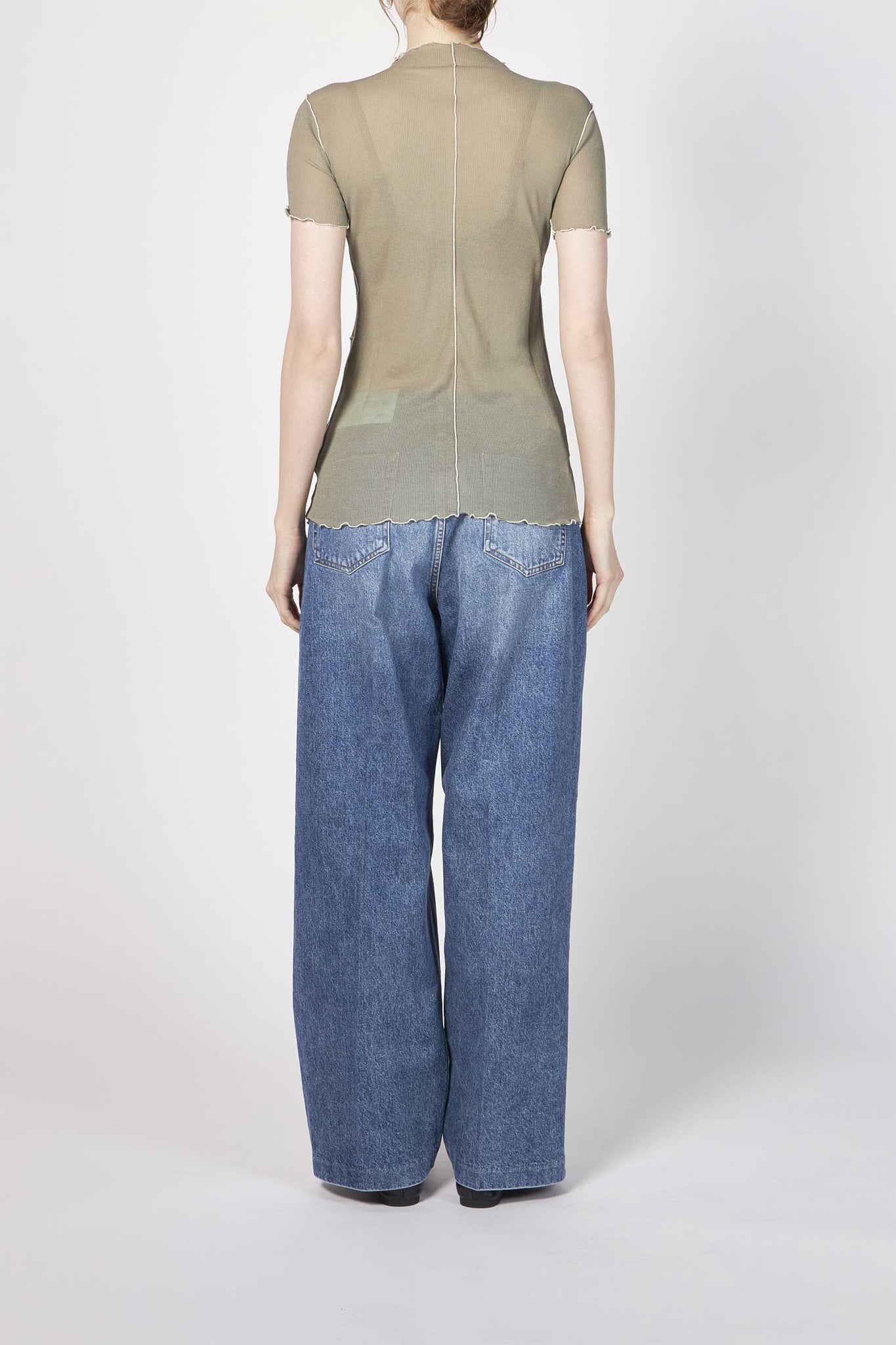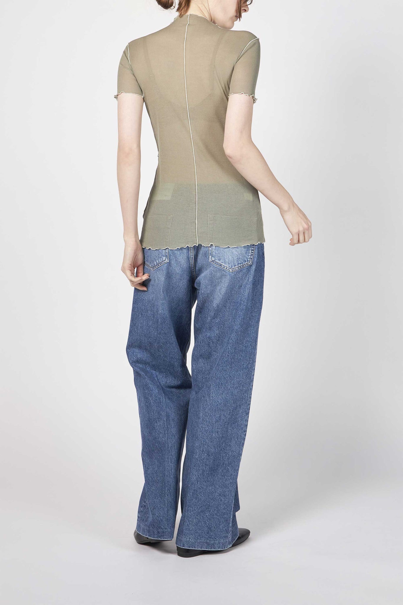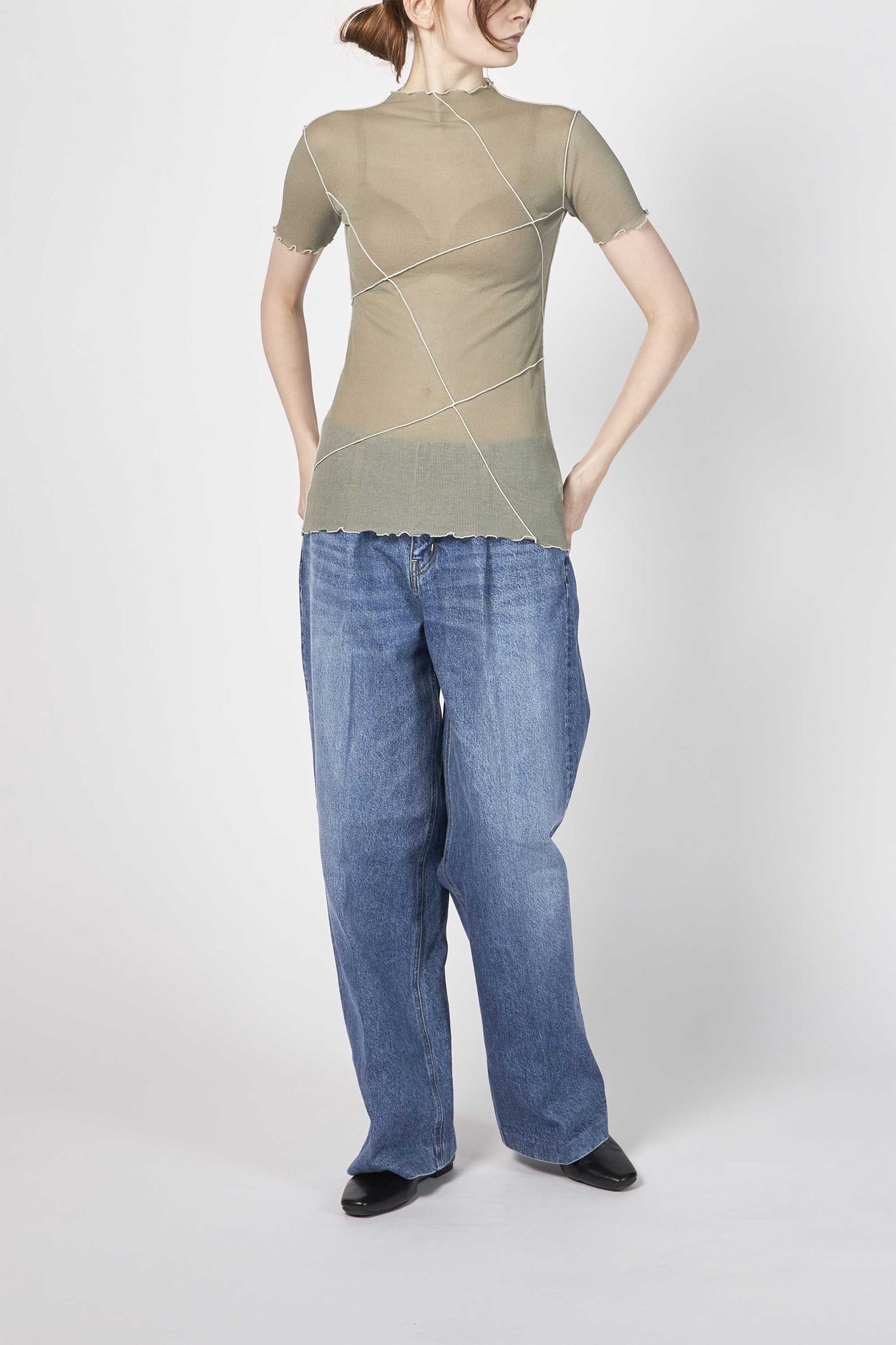透け感のある軽やかな素材で仕立てられたシアートップス。