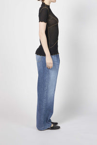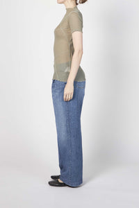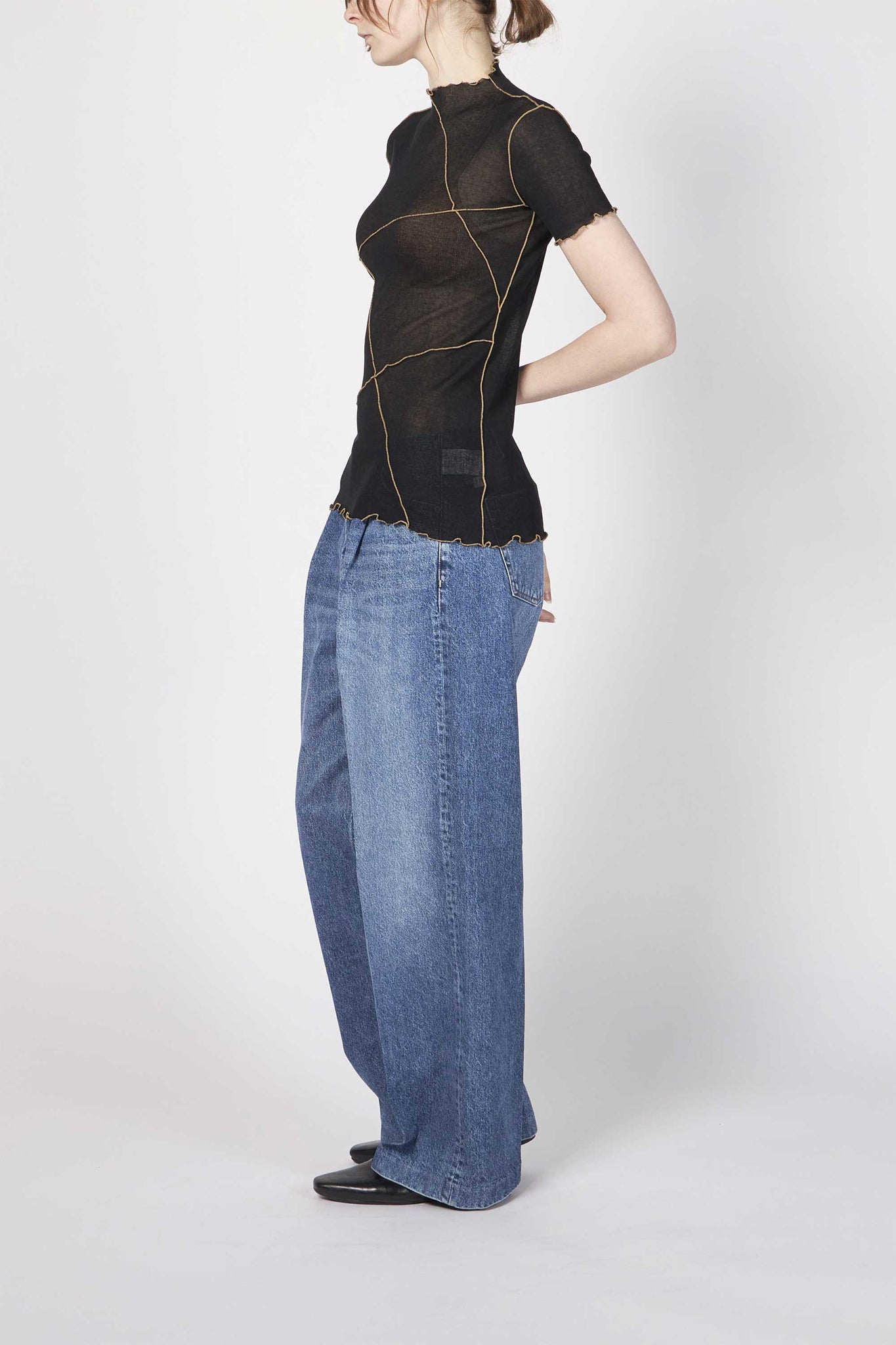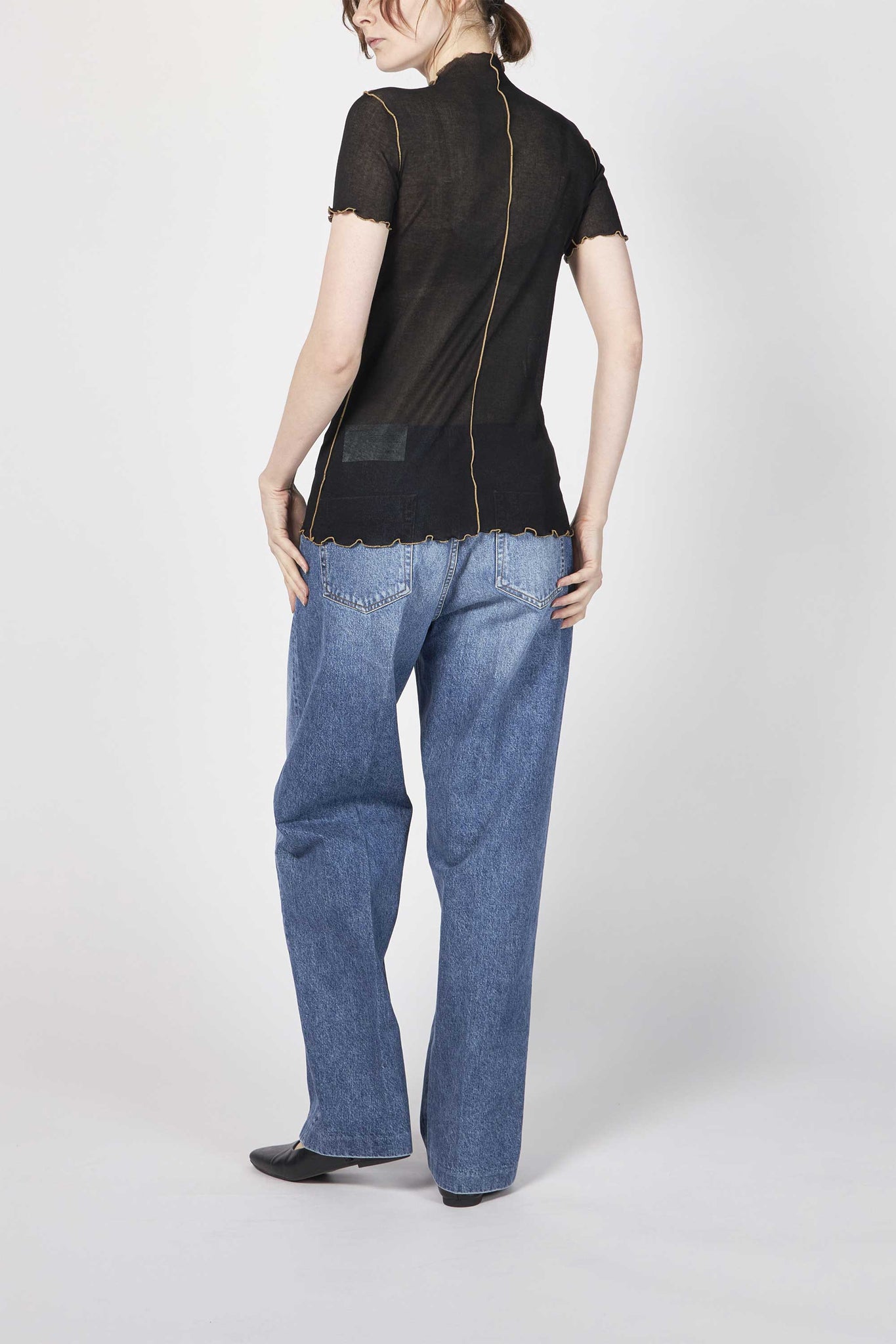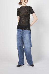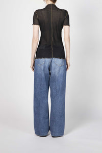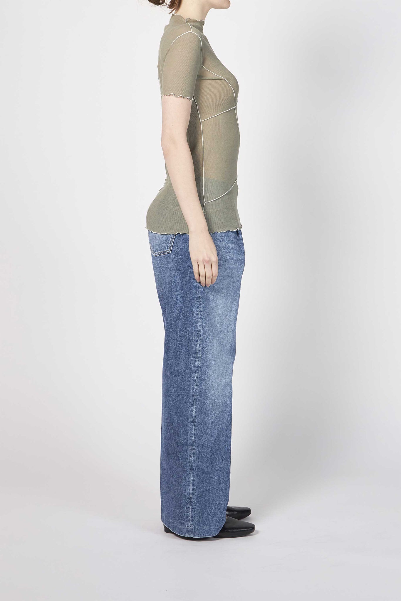 透け感のある軽やかな素材で仕立てられたシアートップス。
