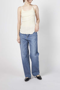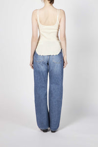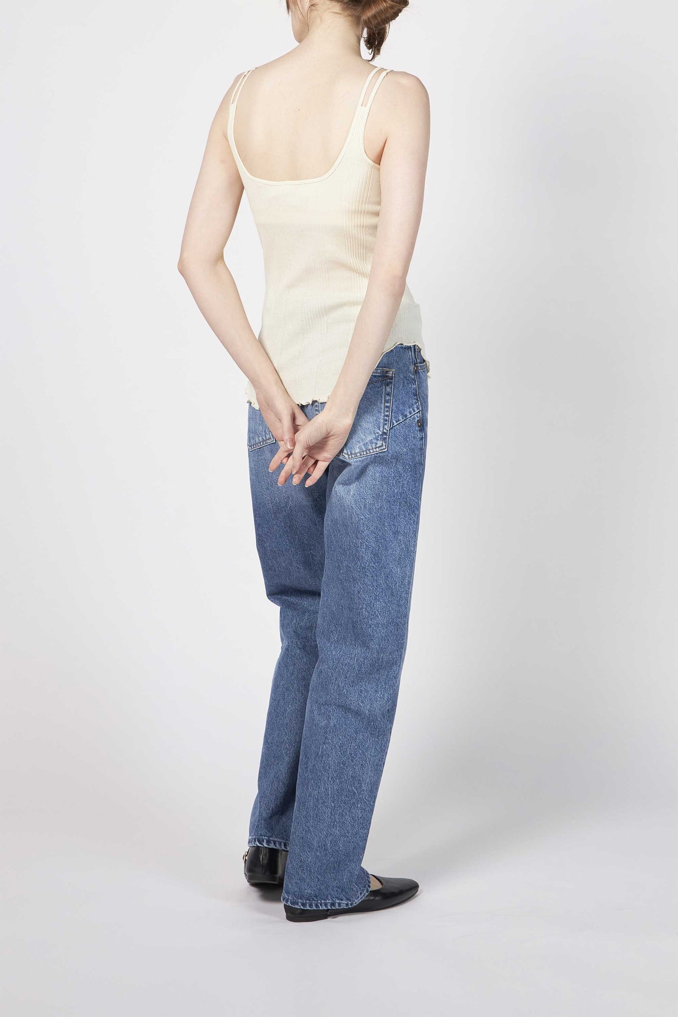 シンプルで使いやすいリブキャミソール。ダブルストラップがデザインポイントとなり、フィット感のあるシルエットが女性らしい印象を与えます。カップ付きなので一枚でも、インナーとしても活躍する万能アイテムです。CLEANING:HAND WASH