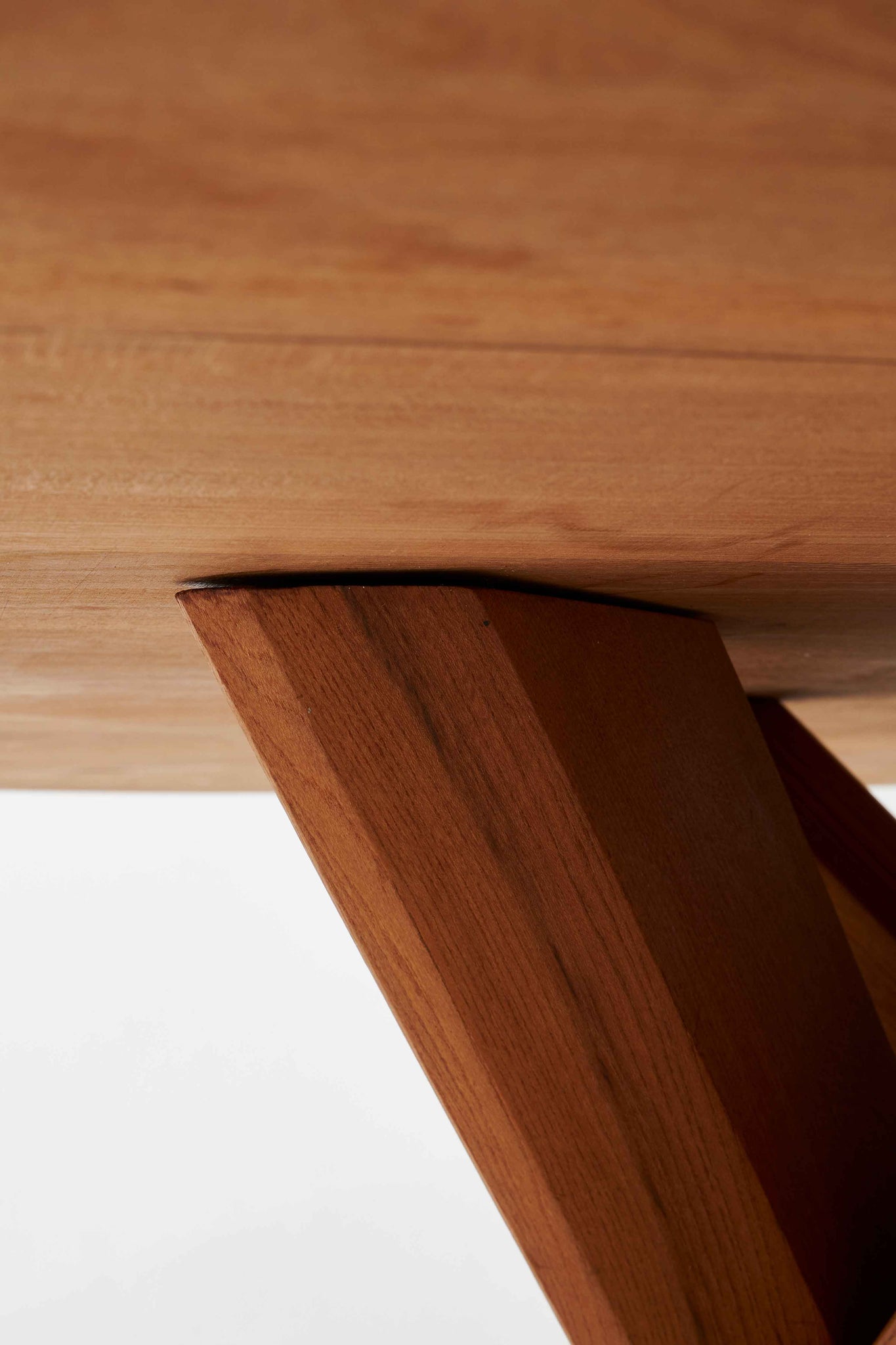 モデルT21はスファックスとも呼ばれます。本格的なデザインと非の打ちどころのない構造は、卓越したクラフトマンシップを感じさせます。絡み合う5本の角のある脚は、開放的な表情を作り出し、安定した構造を実現。少し角度をつけた厚みのある天板は、デザインにエレガントさと軽快さを加えています。天板の側面に見える均整のとれた完璧な木組みは、まさにChapoのトレードマークとなるポイント。ニレのパティナや自然な木目を見事に表現した作品です。