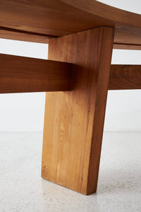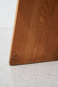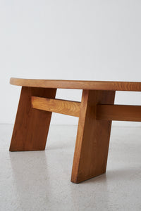 丸いテーブル ( T21D TABLE) と相性の良いベンチで、見事なまでの無垢材の継ぎが印象的。温かみのある色合いと木目は、素材そのものの個性を強調しています。ピエール・シャポーのクリエーションとクラフトマンシップを示す素晴らしい作品です。