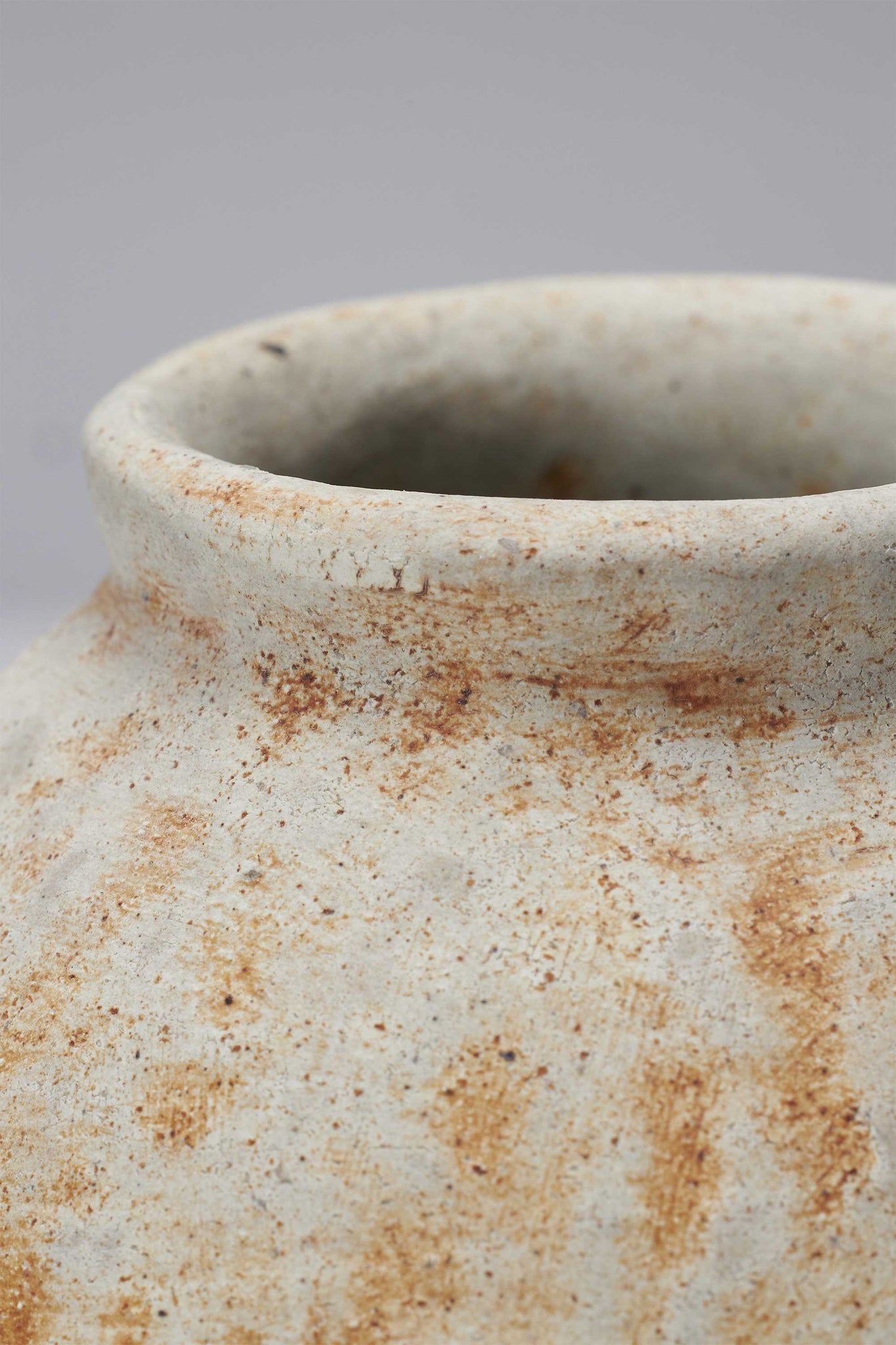 美濃地方の土と信楽の土などをブレンドし、釉薬は日常の中で自然と生活に溶け込むものを作家自身が厳選し、選んでいます。鉄分を多く含む赤茶色の土をベースに何層も違う土を塗り重ね、還元焼成でやくことによりゆったりとした土器のような赤褐色の色合いと優しい土の表情になります。