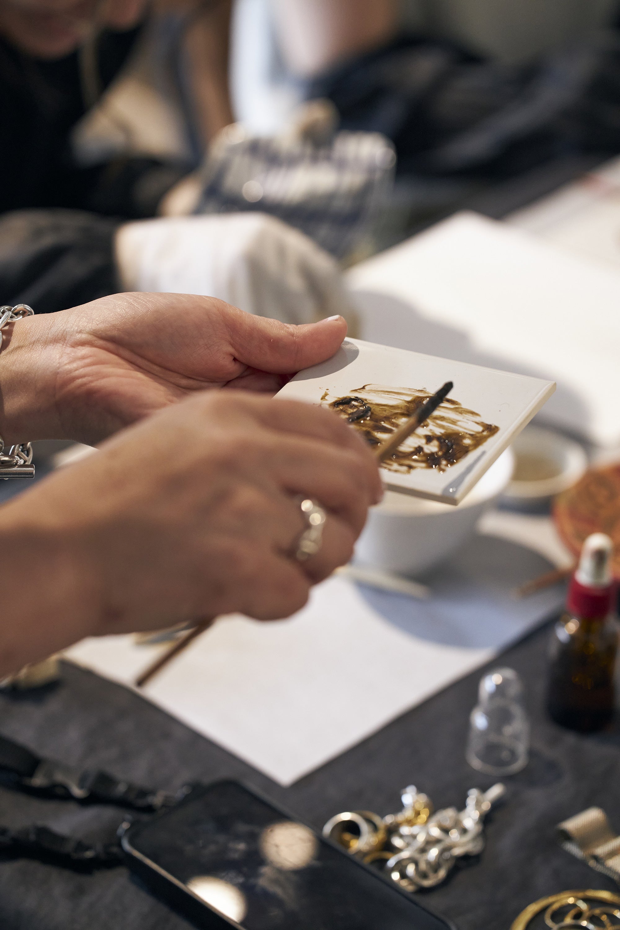 楽しく和気藹々とした雰囲気も、たちまち作業にかかればアトリエのような空間に。各自が思い入れのある器を金継ぎしていく姿は、とても美しく、まるで職人のようでした。