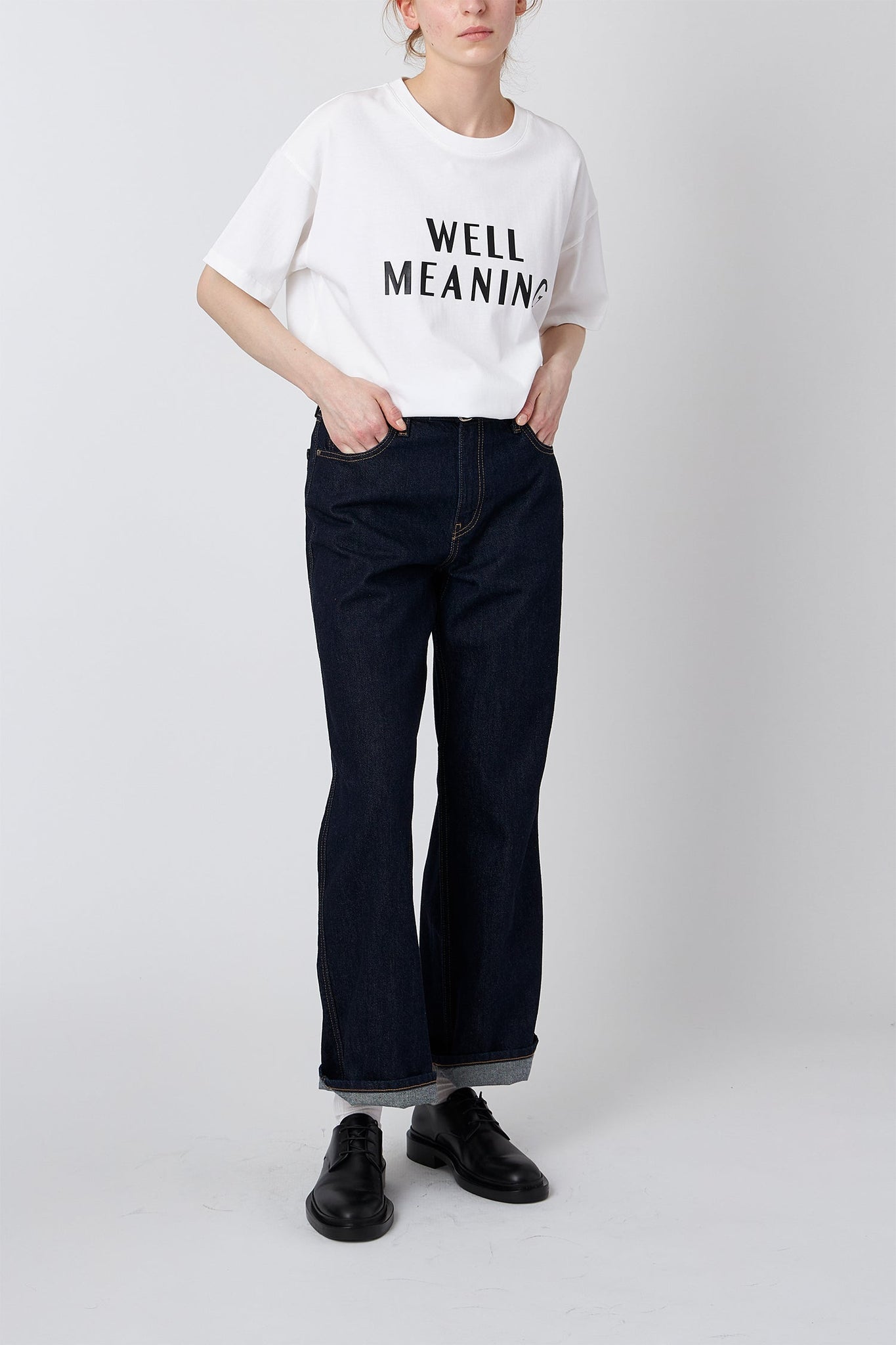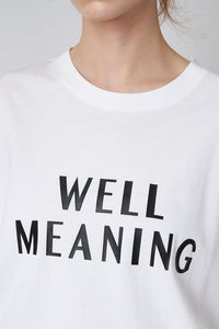 WELL MEANING スローガンT-シャツ ホワイト半袖。
