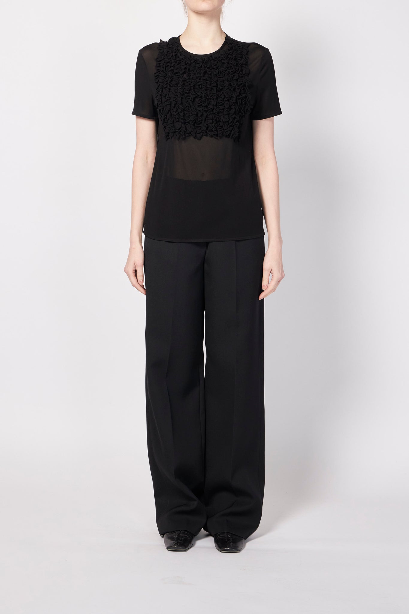 滑らかで軽やかな着心地が特徴のビスコース レーヨン100%素材を使用し、さりげなく施された刺繍がアクセントとなり、シンプルながらもエレガントな印象を与えます。
