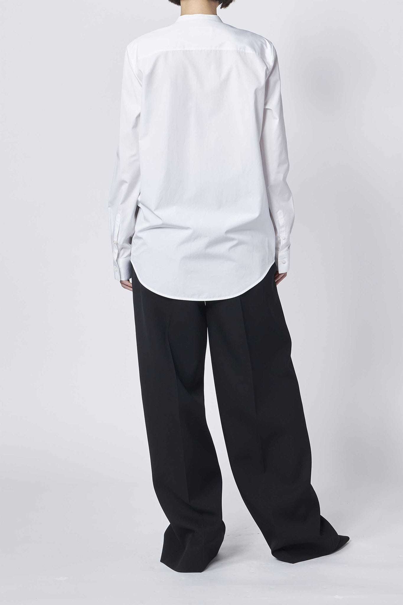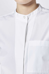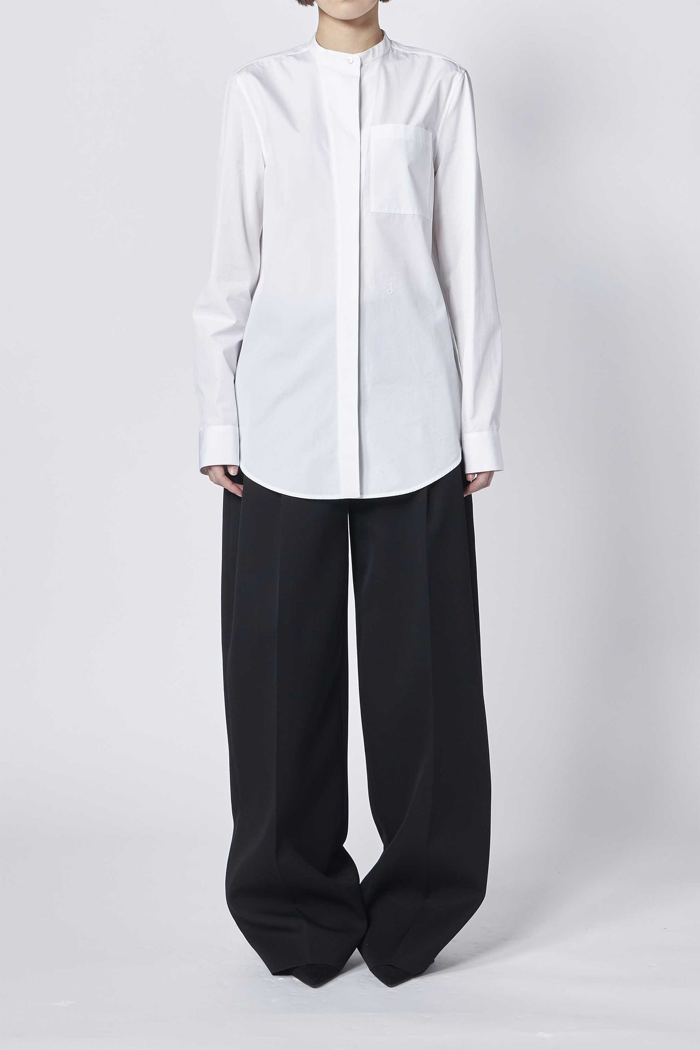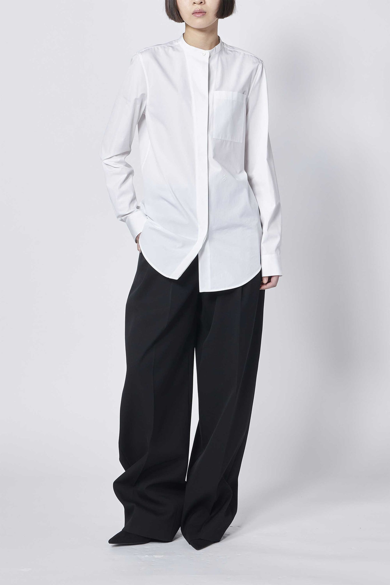 Jil Sanderのシェイプされたスタンドカラーと胸ポケットが特徴のコットンポプリンシャツ。