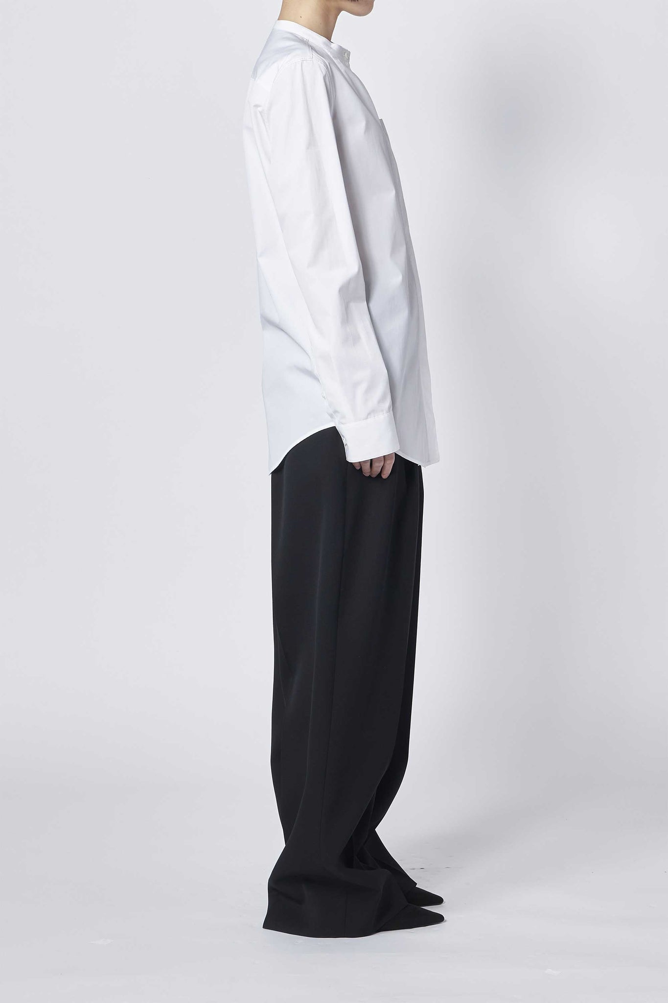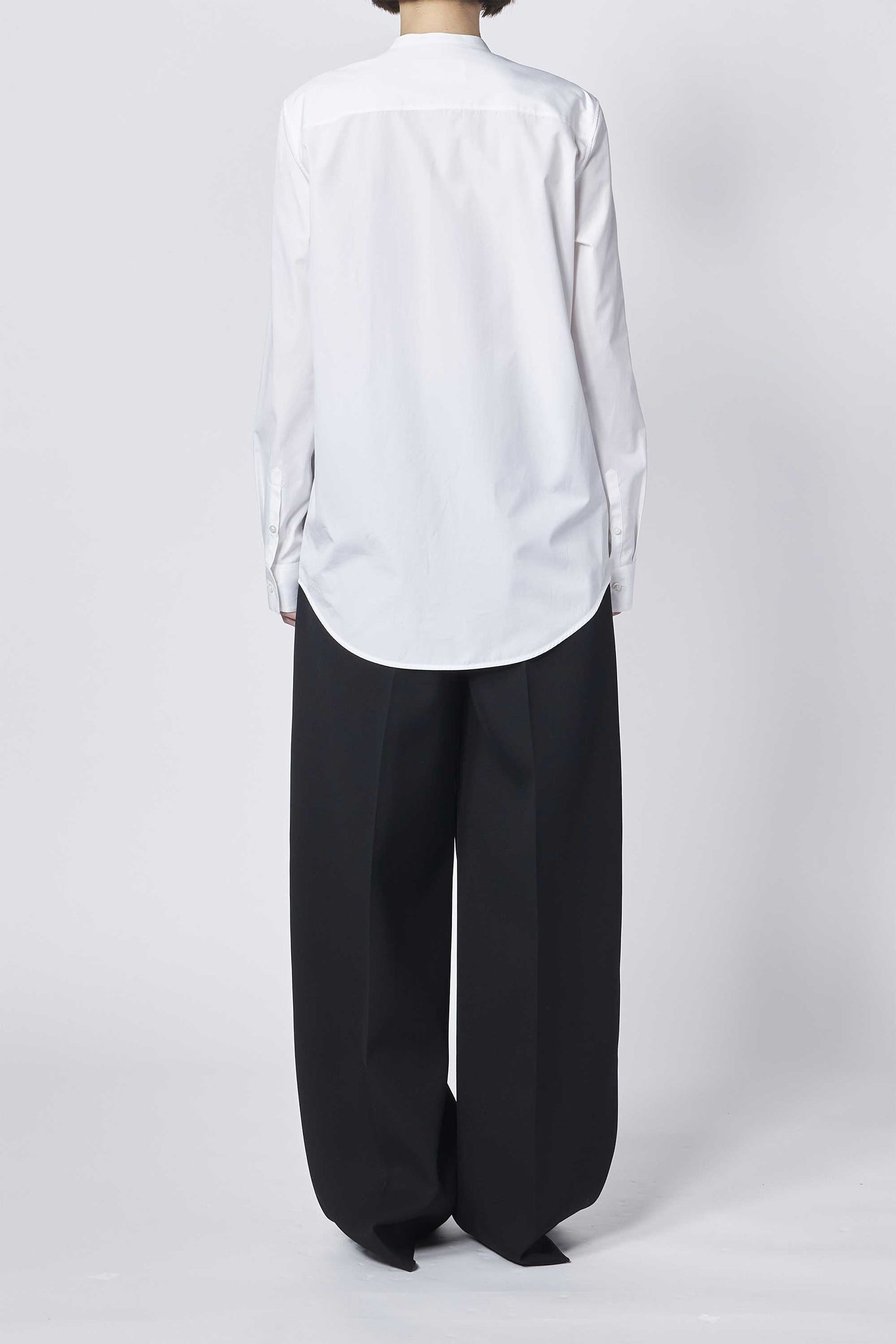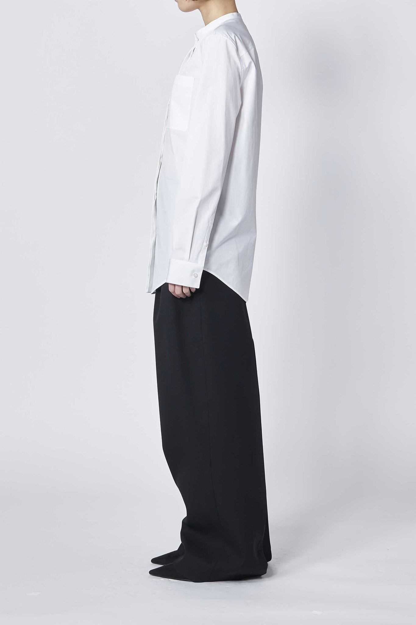 Jil Sanderのシェイプされたスタンドカラーと胸ポケットが特徴のコットンポプリンシャツ。