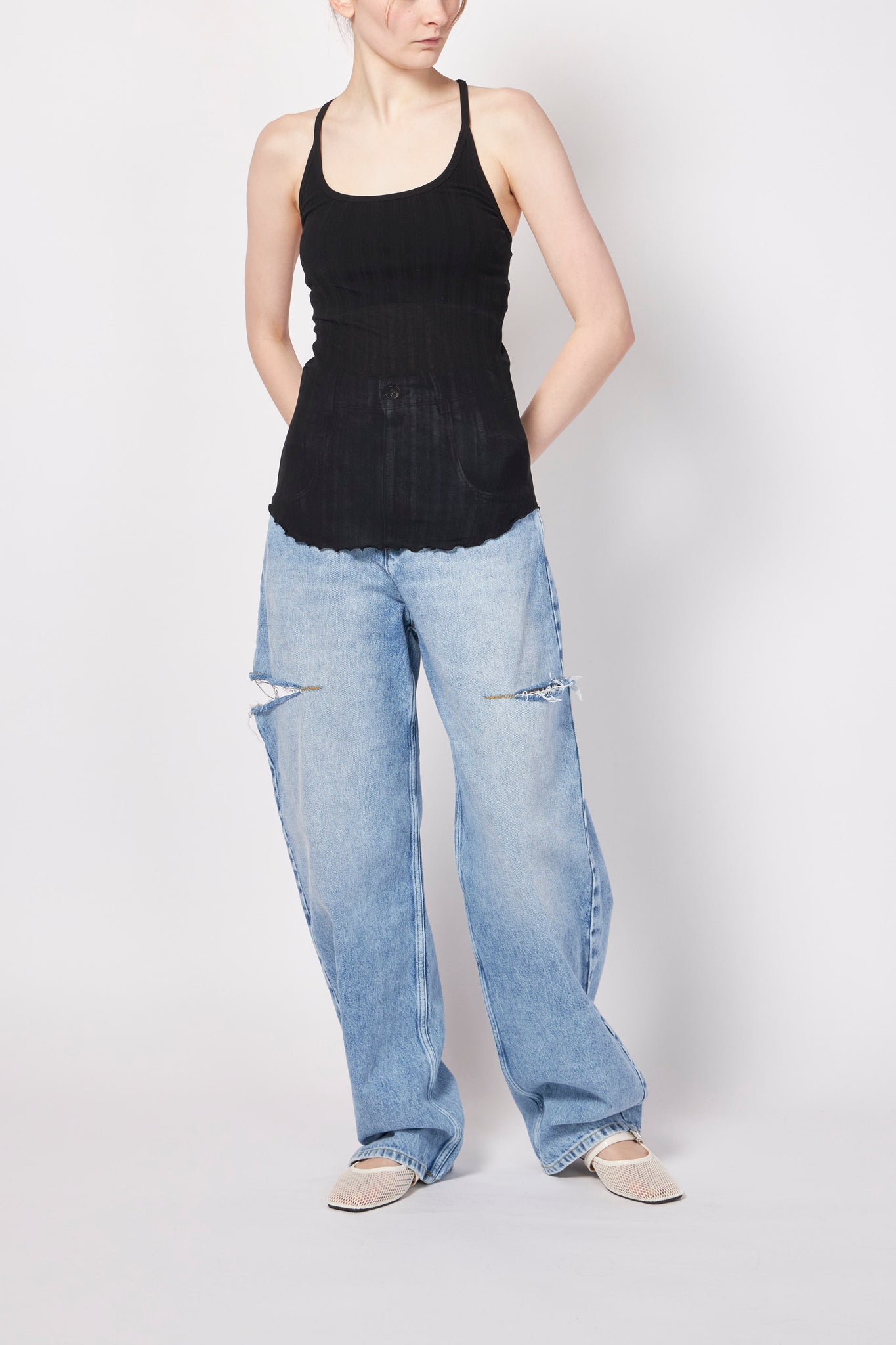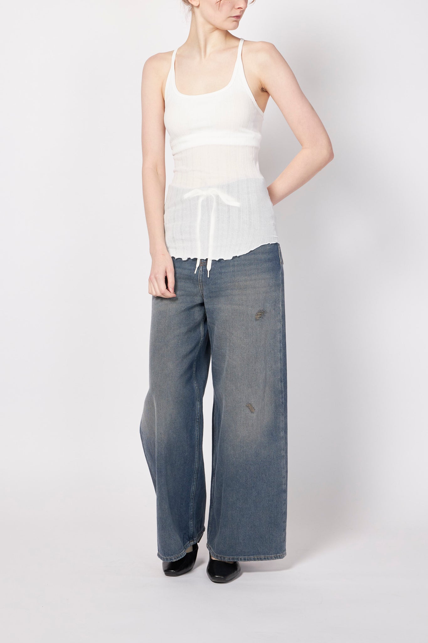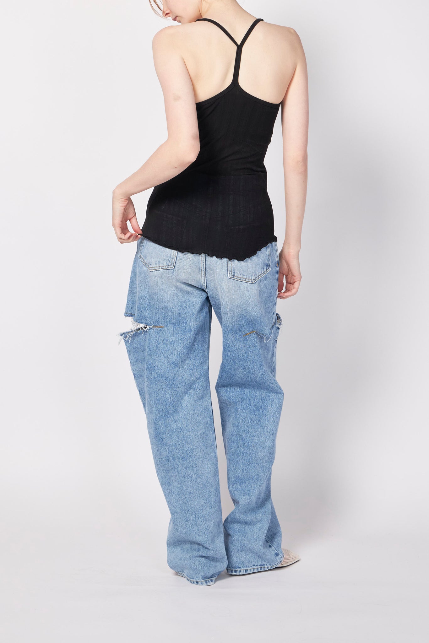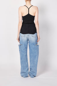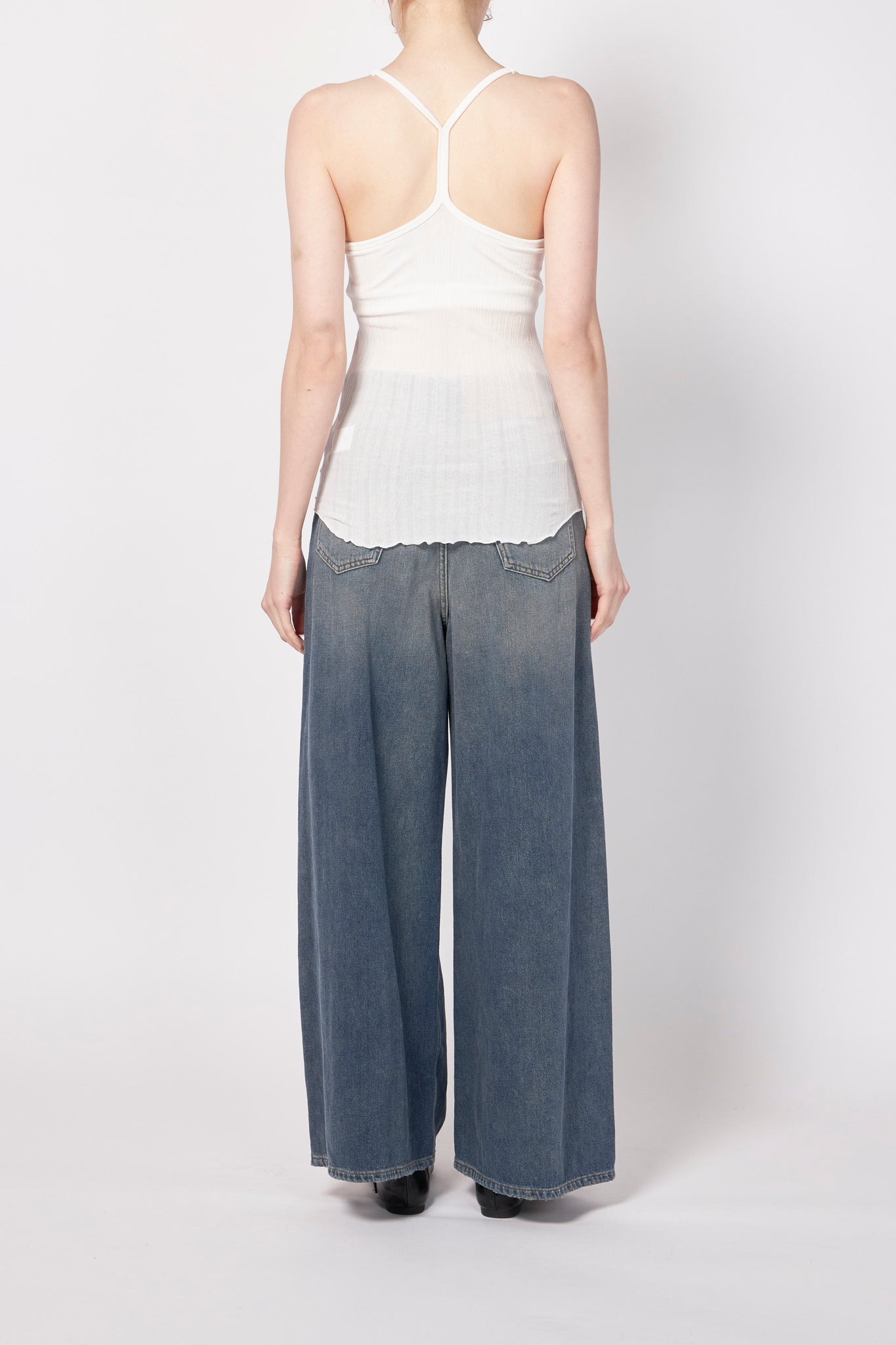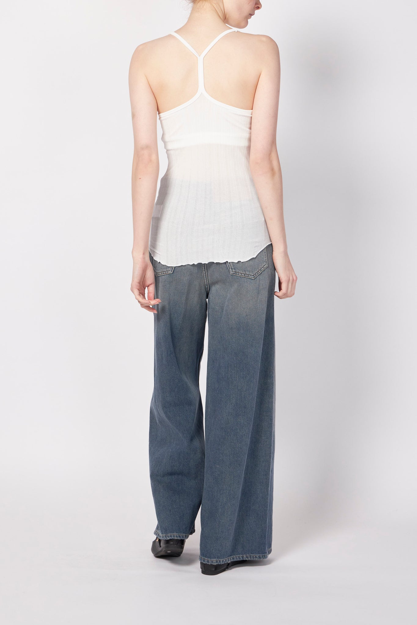 繊細なワイドリブ生地を使用したカップ付きキャミタンクトップ。さらりとしたシャリ感のある生地が心地よく、暑い季節にも快適に着用できるアイテムです。シンプルで着回し力も高く、後ろのY字ストラップが特徴的な一枚です。CLEANING:HAND WASH