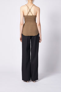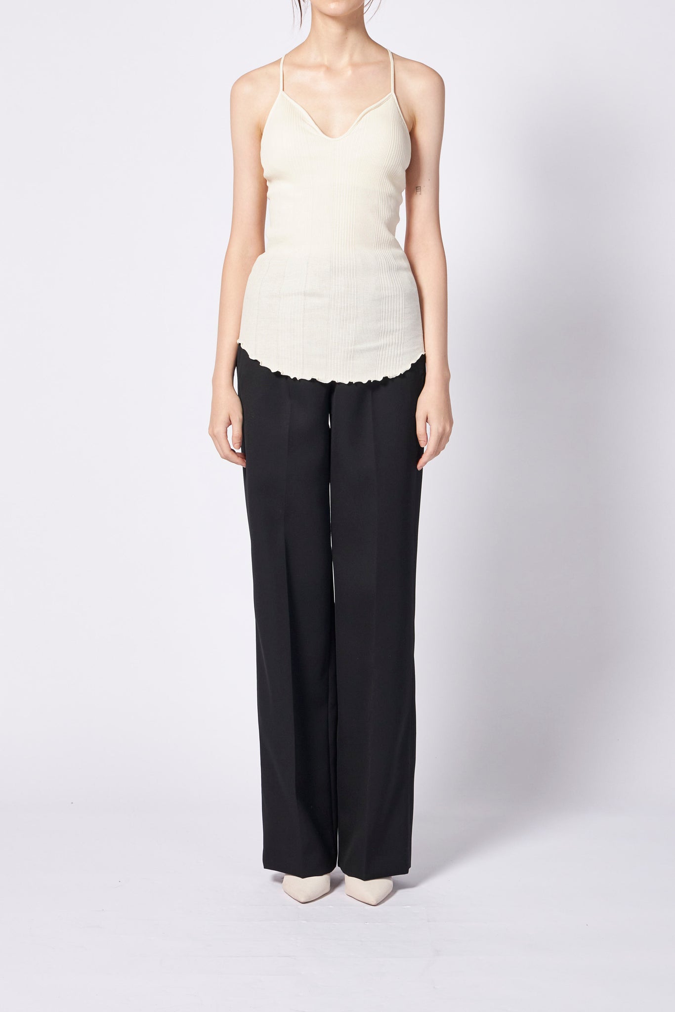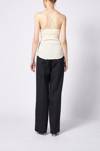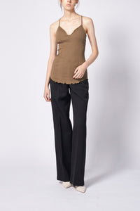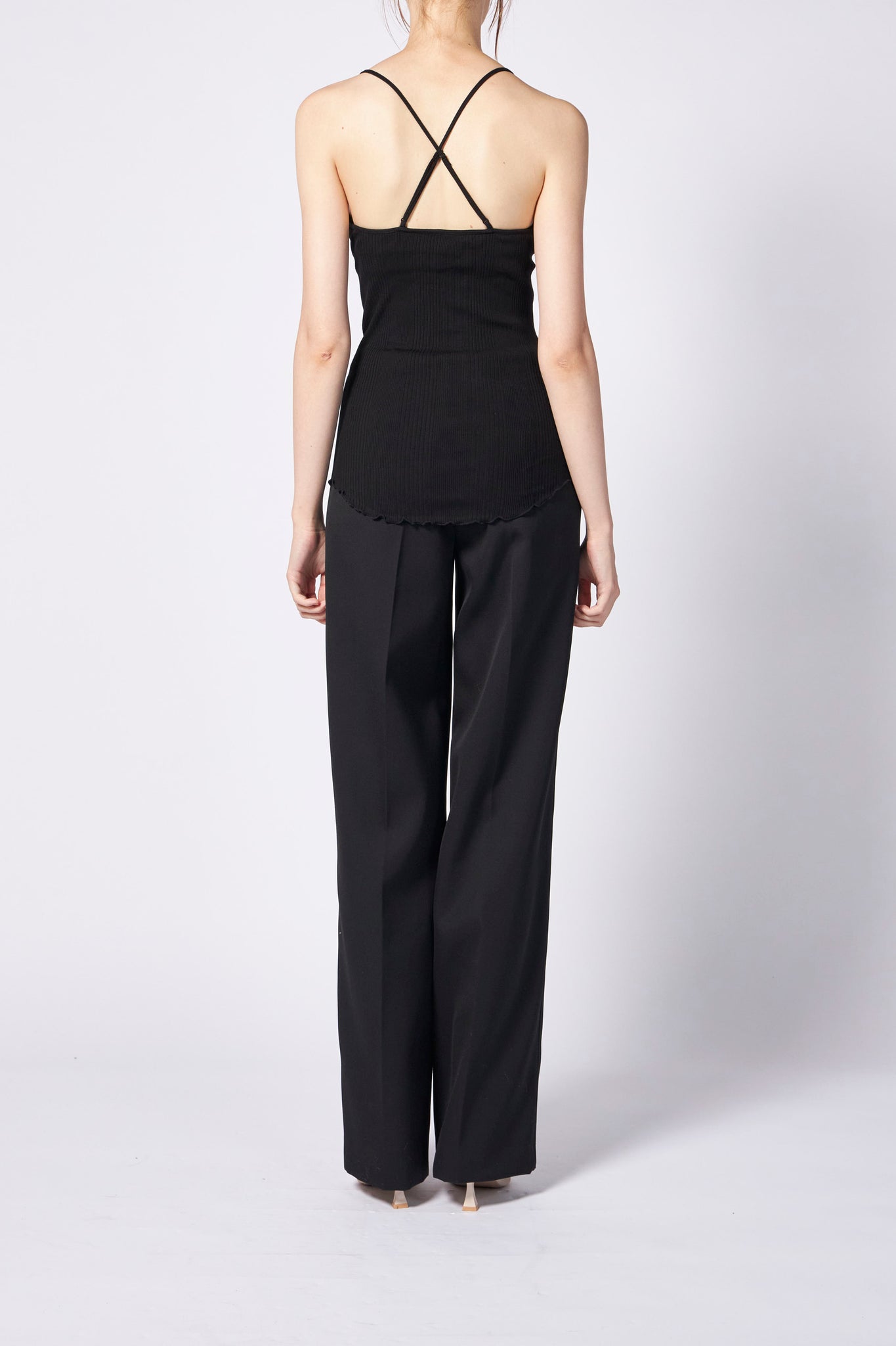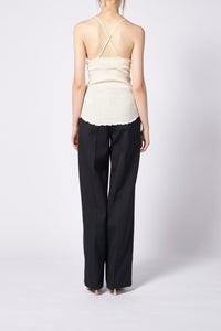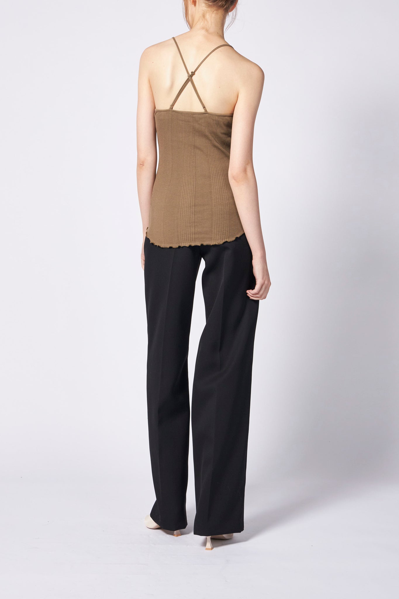 カップ入りなのでインナーとしの着回し力が高く、シルクが入ることによる薄手かつしなやかなタッチと背中クロスのデザインも魅力のひとつです。