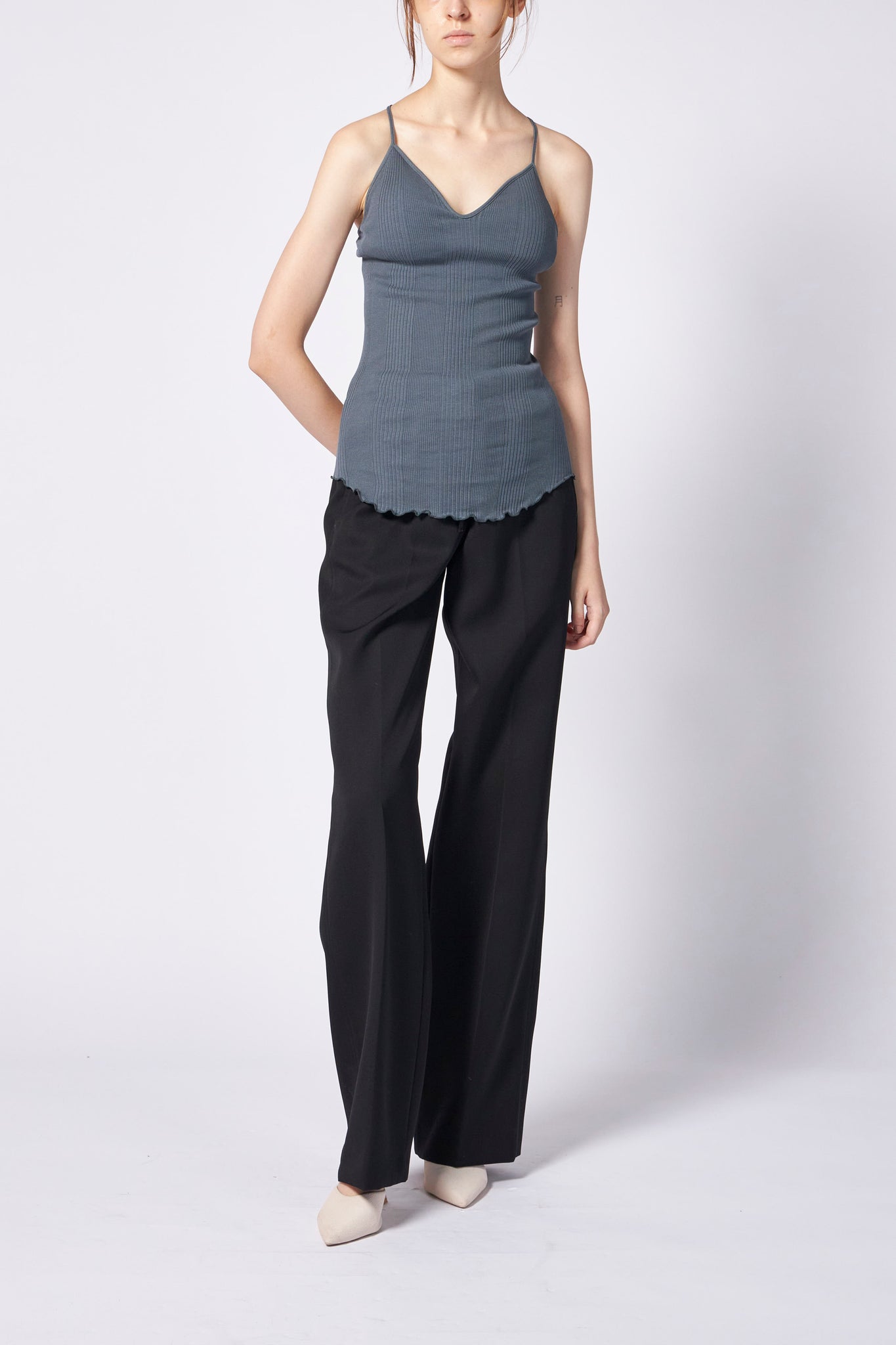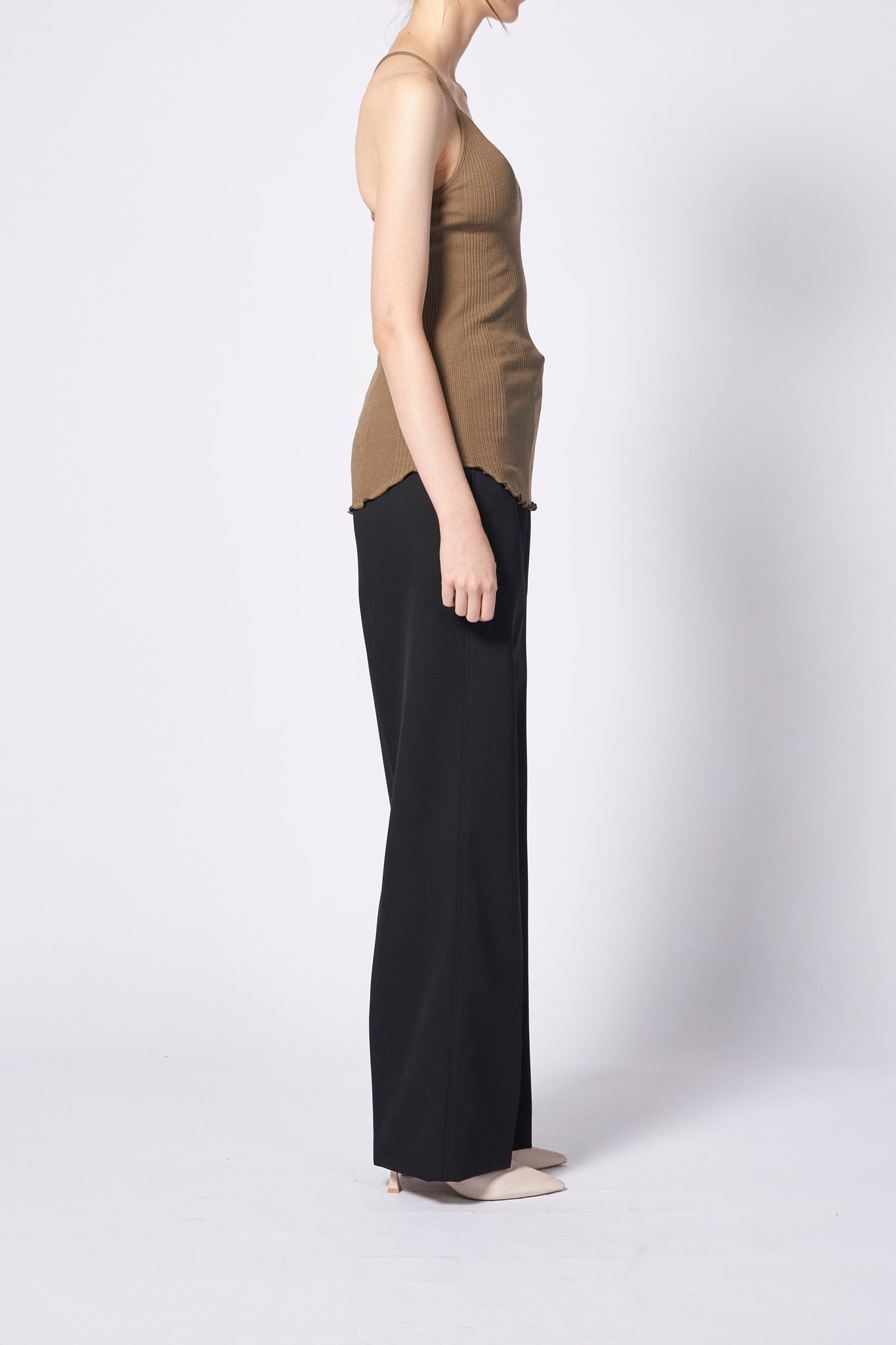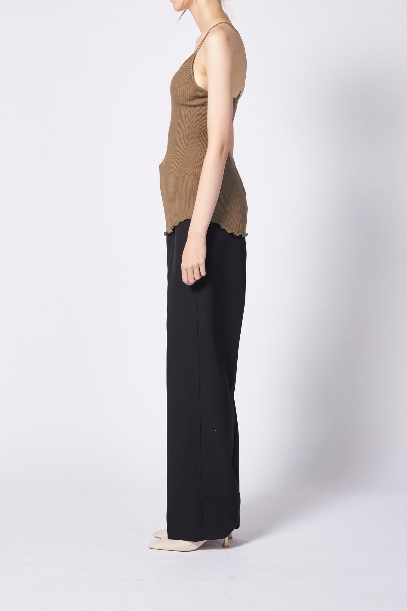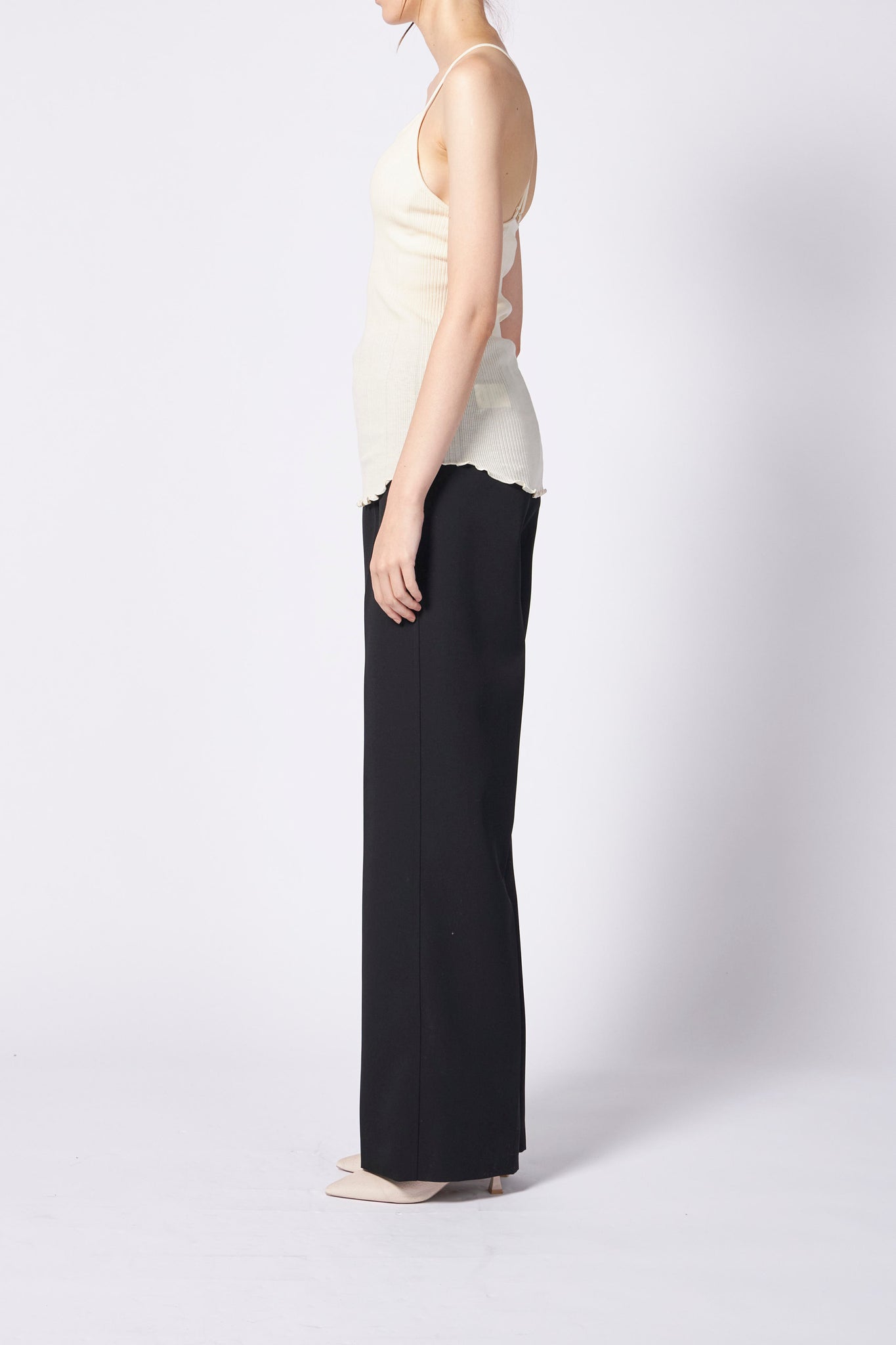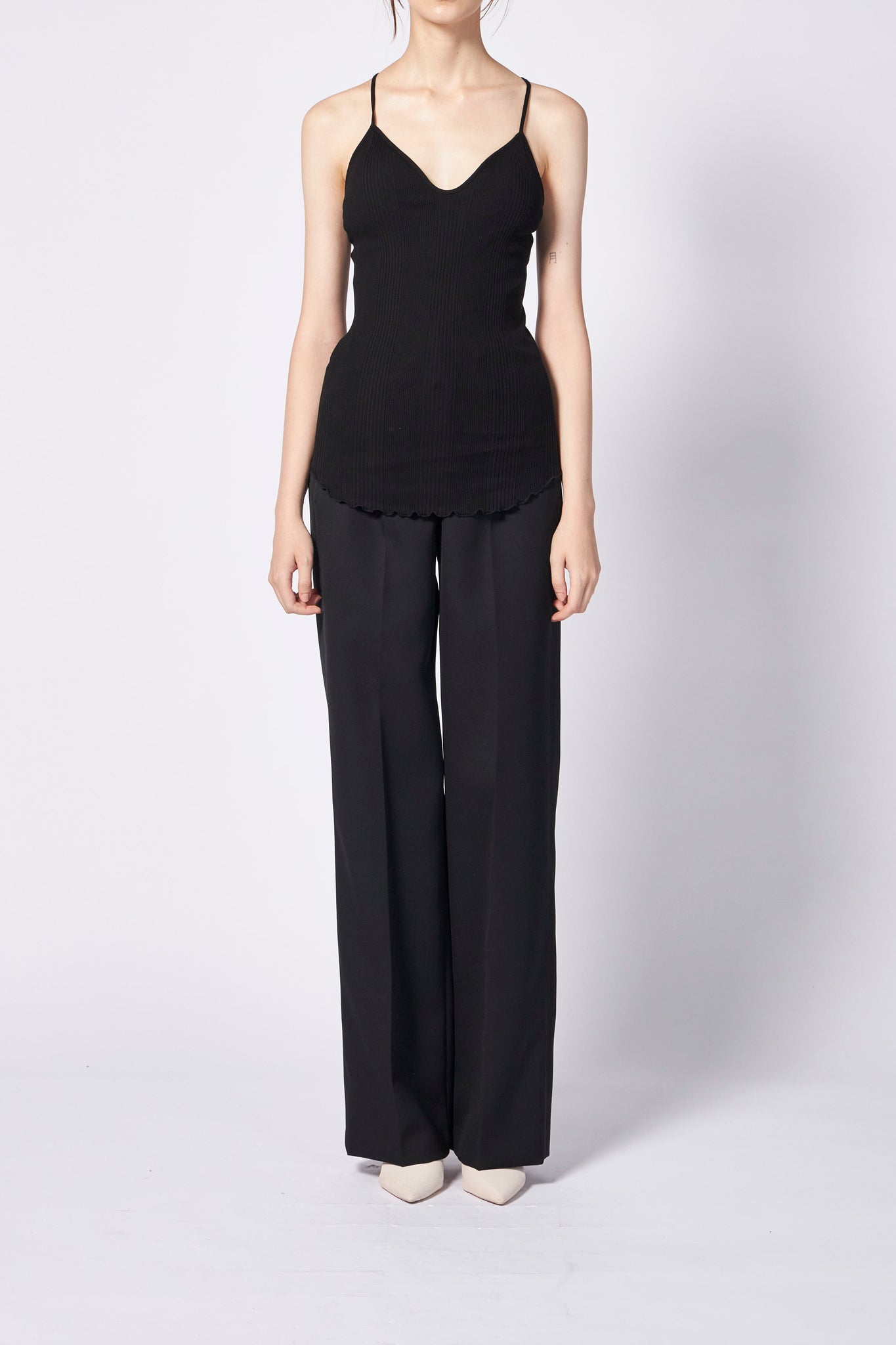 着用した時、身体がより美しく見えるようにこだわったシルエットが特徴で、胸元のカッティングは、重ね着した際に透けて見えても美しく見えるような計算された曲線に。