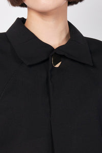 ミニマルなハイネックに、オリジナルのゴールド金具釦がモードなアクセントを添えます。