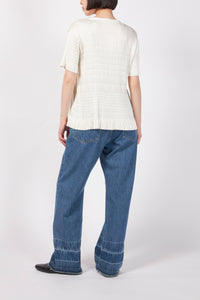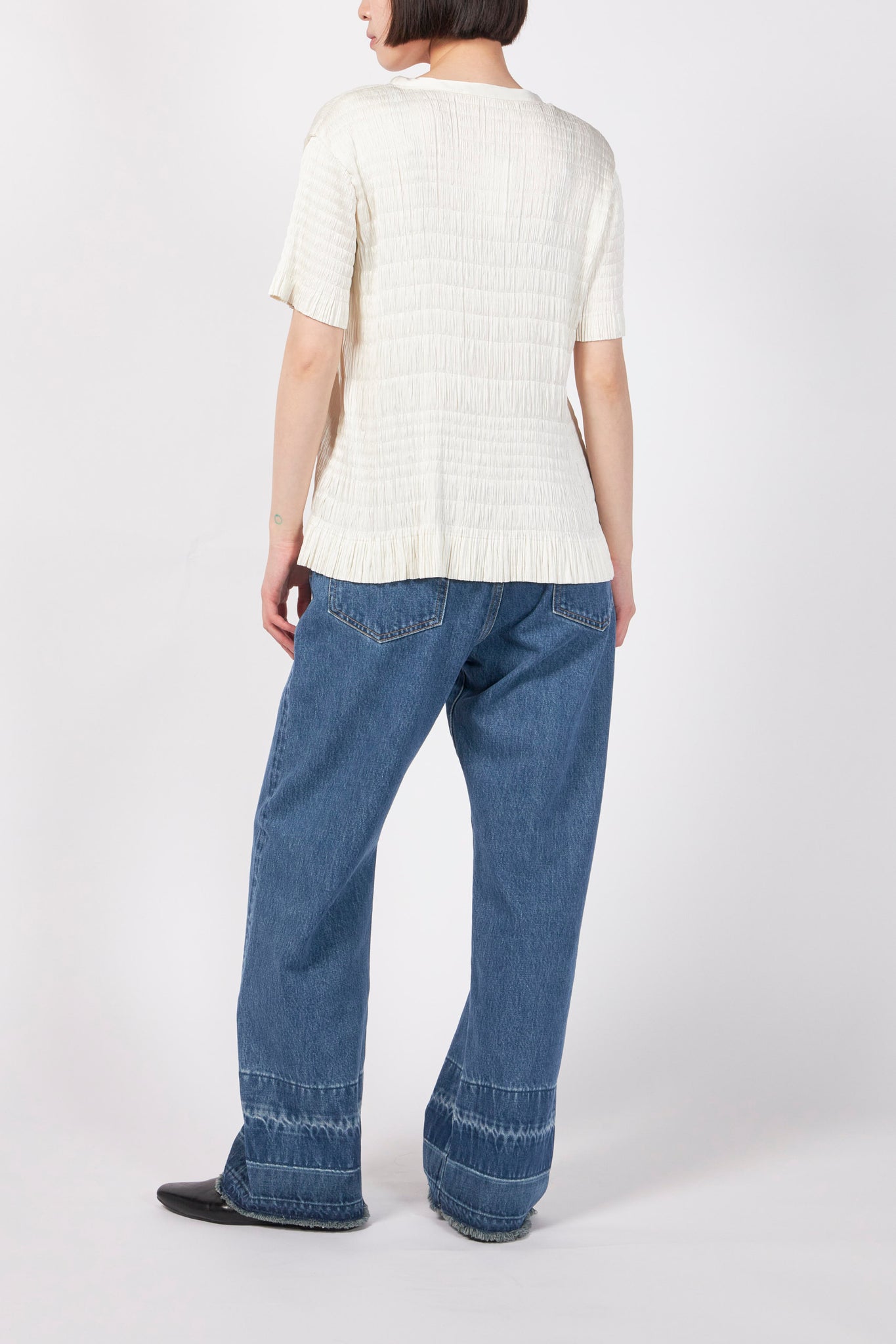 裾にはカットオフ加工を施し、リメイク風のアクセントをプラス。