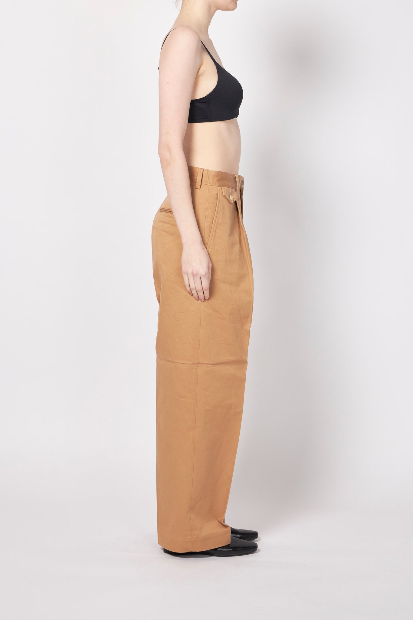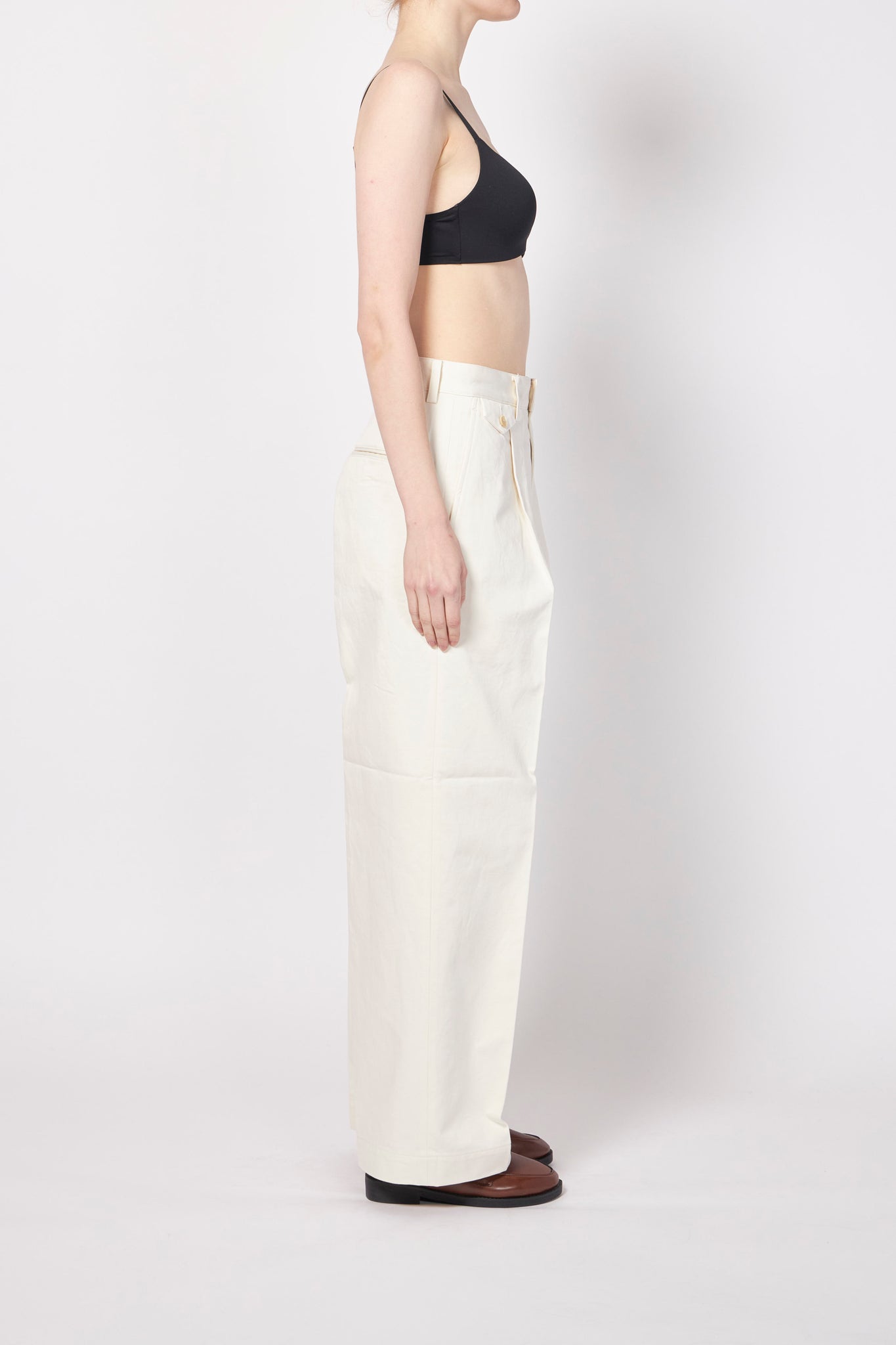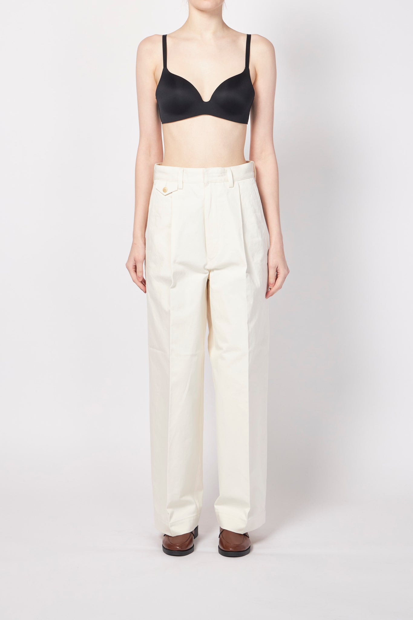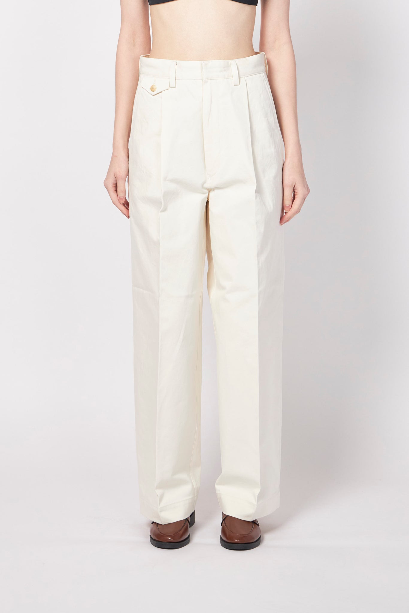 経糸にはエジプト産の超長綿 「フィンクスコットン」 を3本撚り合わせた糸を使用し、丁寧に織り上げたチノクロス。