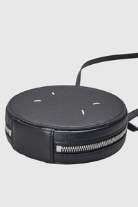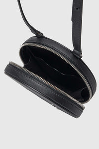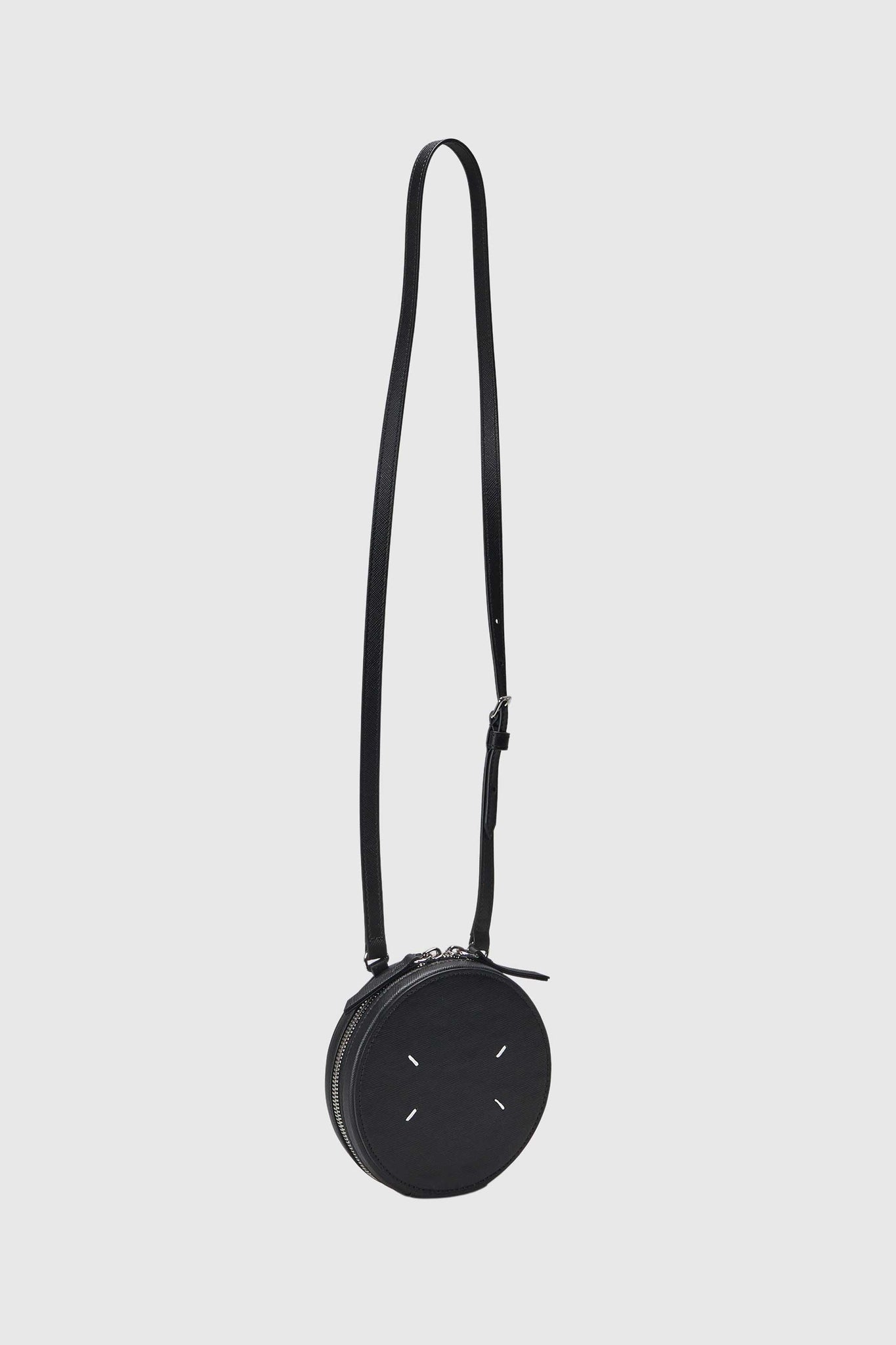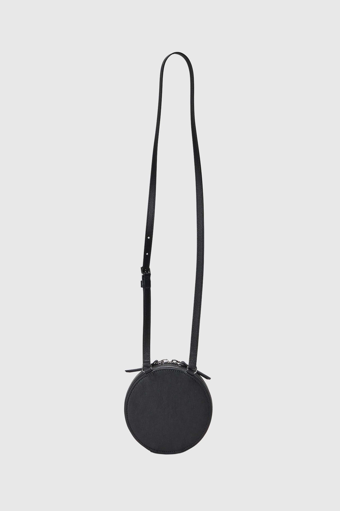 調節可能なショルダーストラップが付いたミニラウンドバッグ。