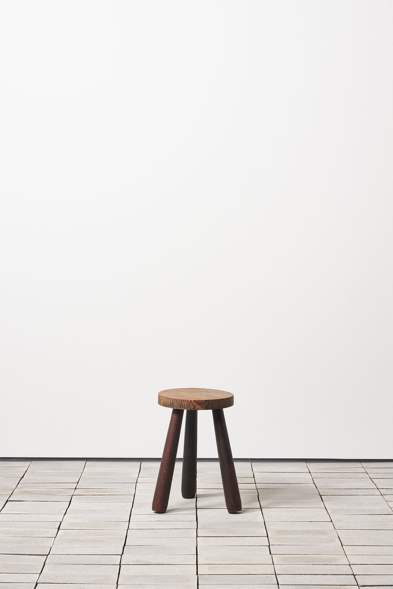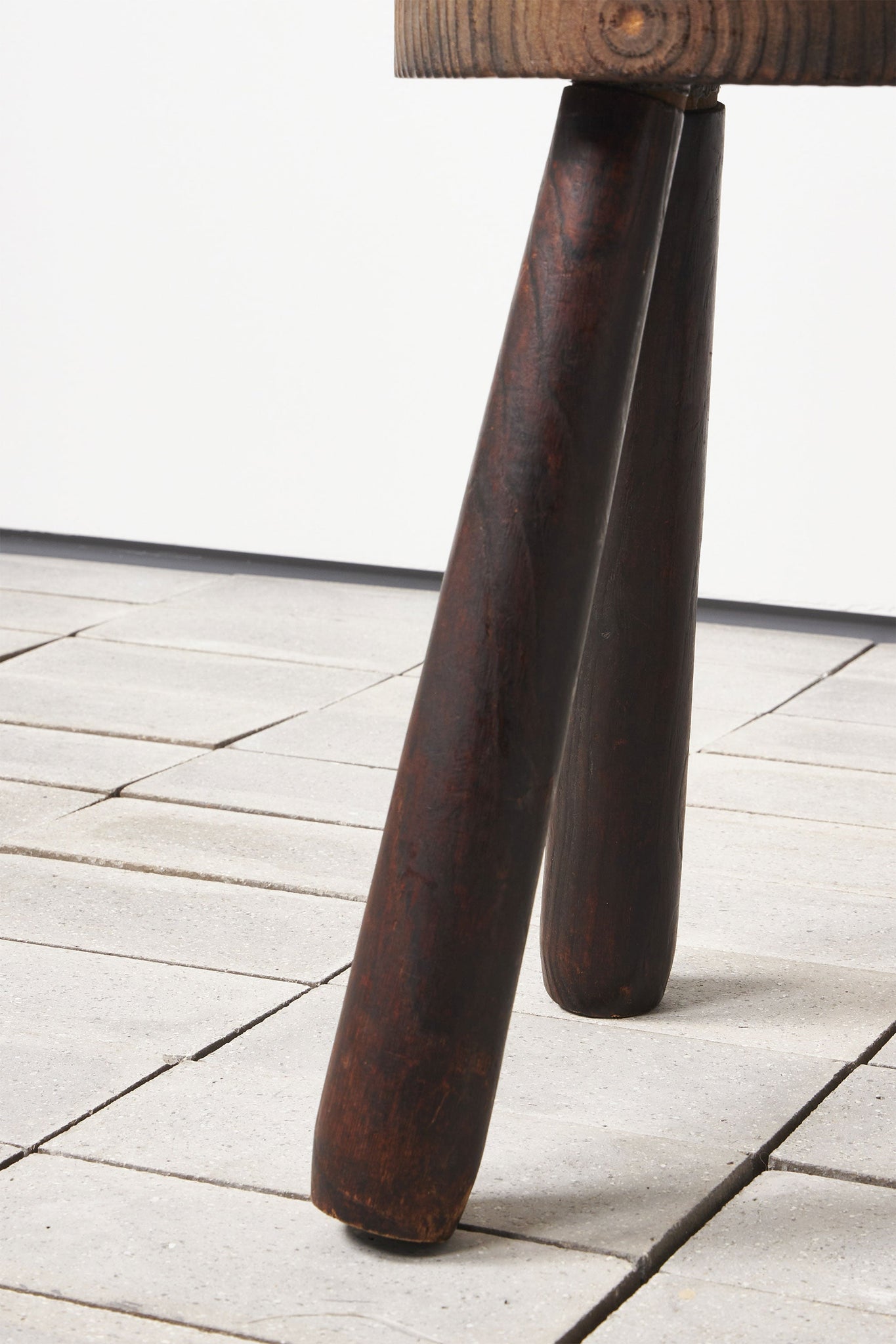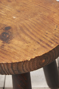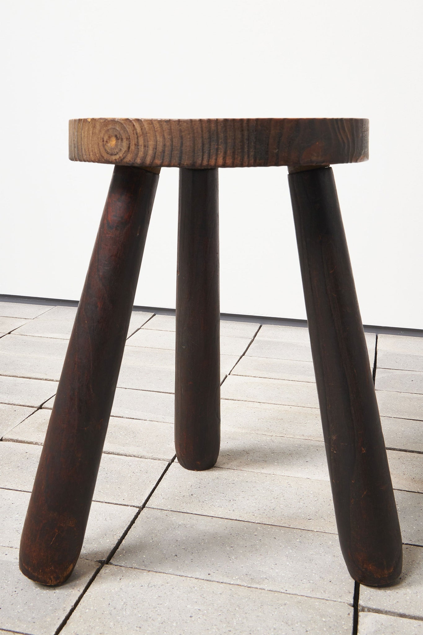 しっかりとした頑丈な木製で仕上げられた、50年代のフランス製三脚スツール。