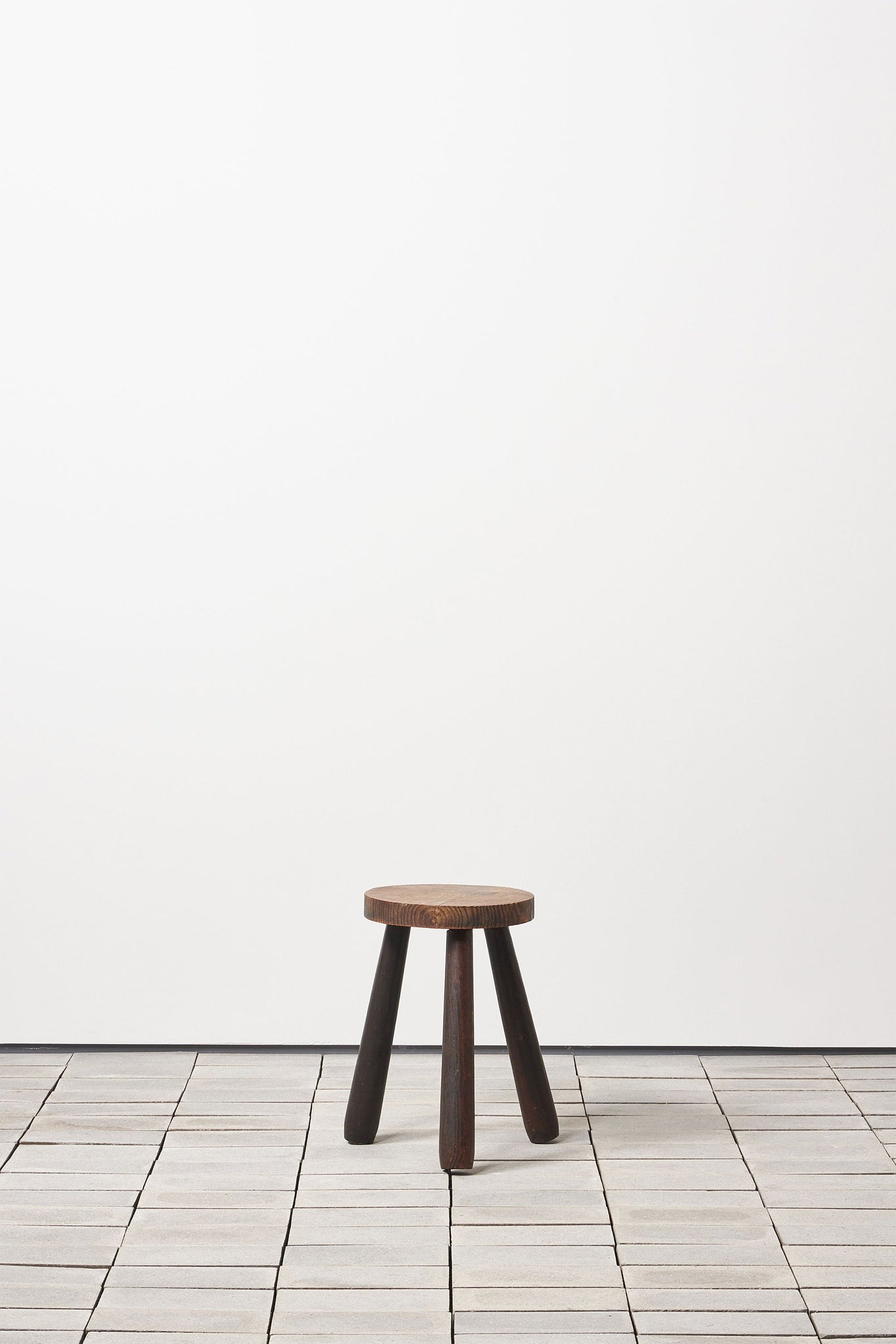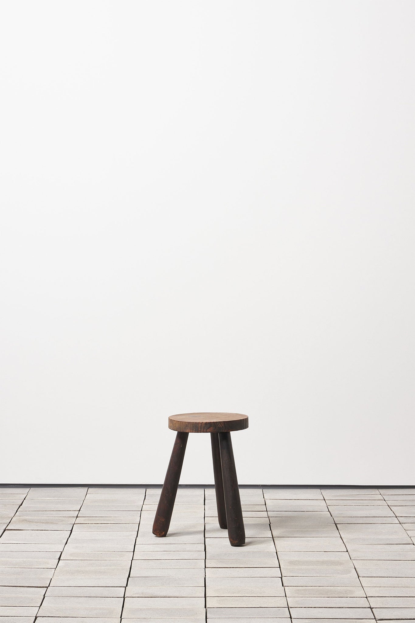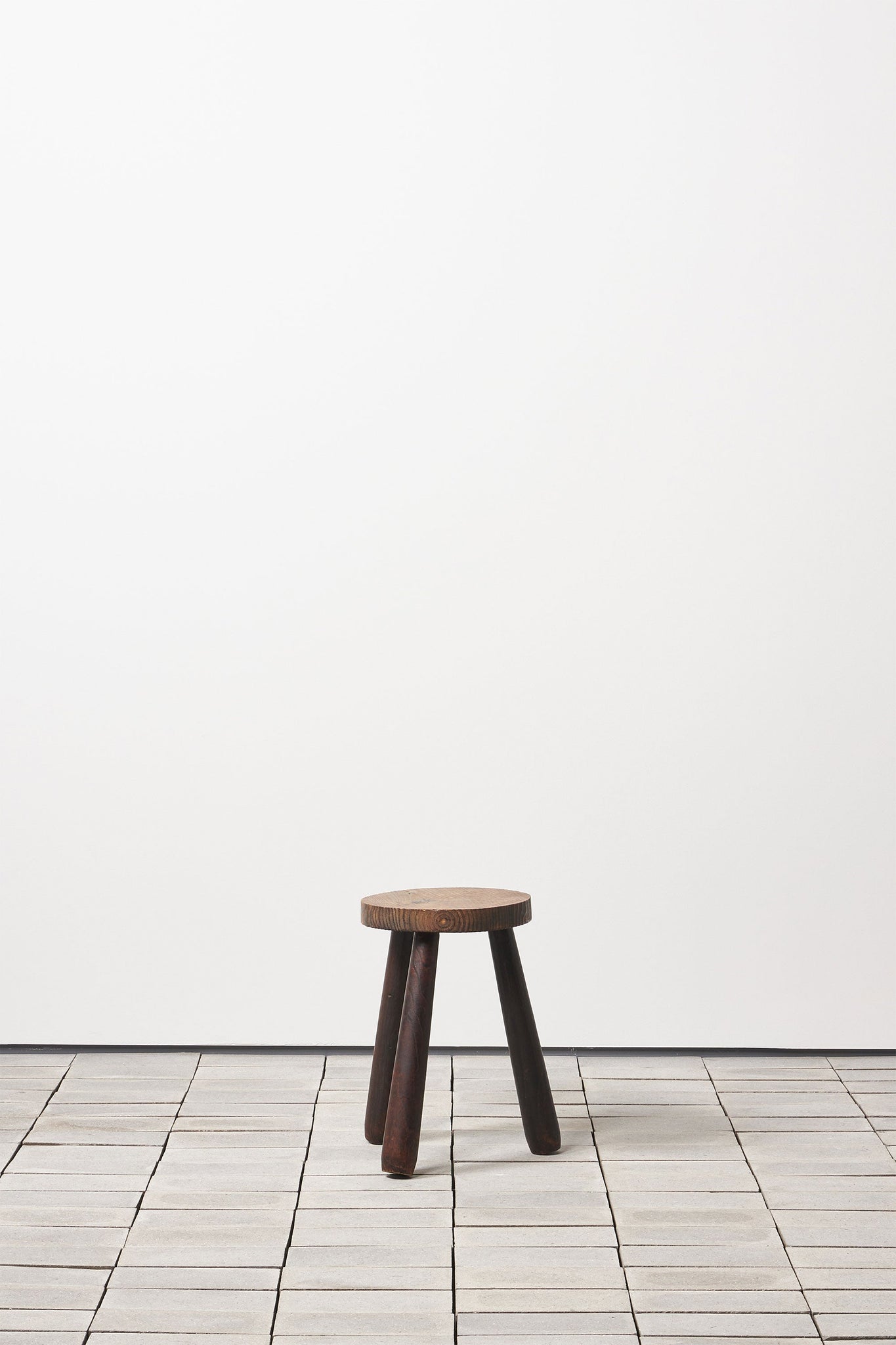 しっかりとした頑丈な木製で仕上げられた、50年代のフランス製三脚スツール。
