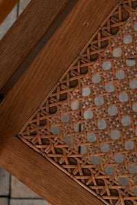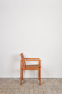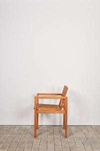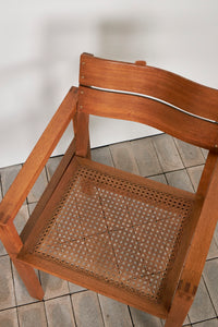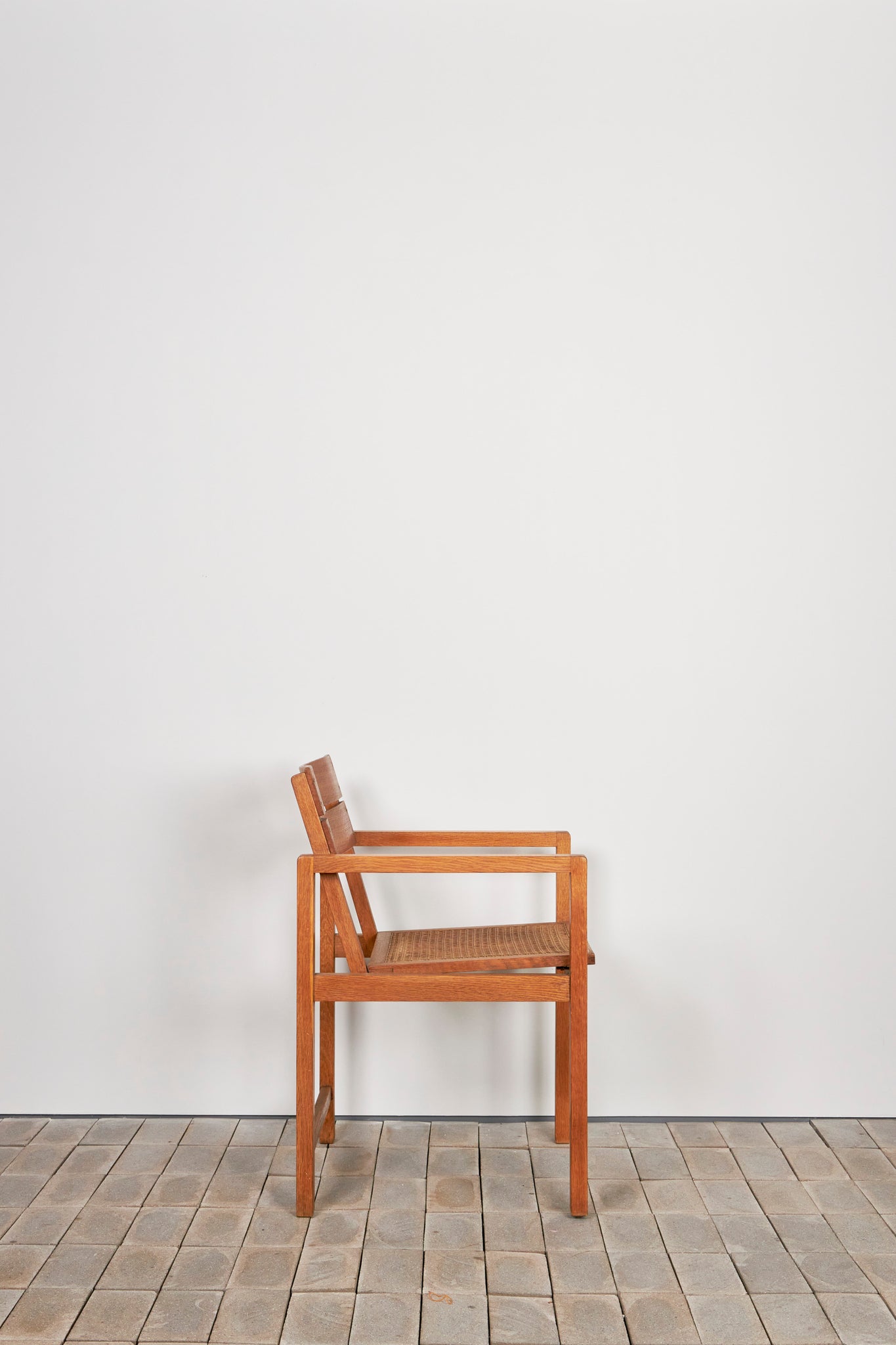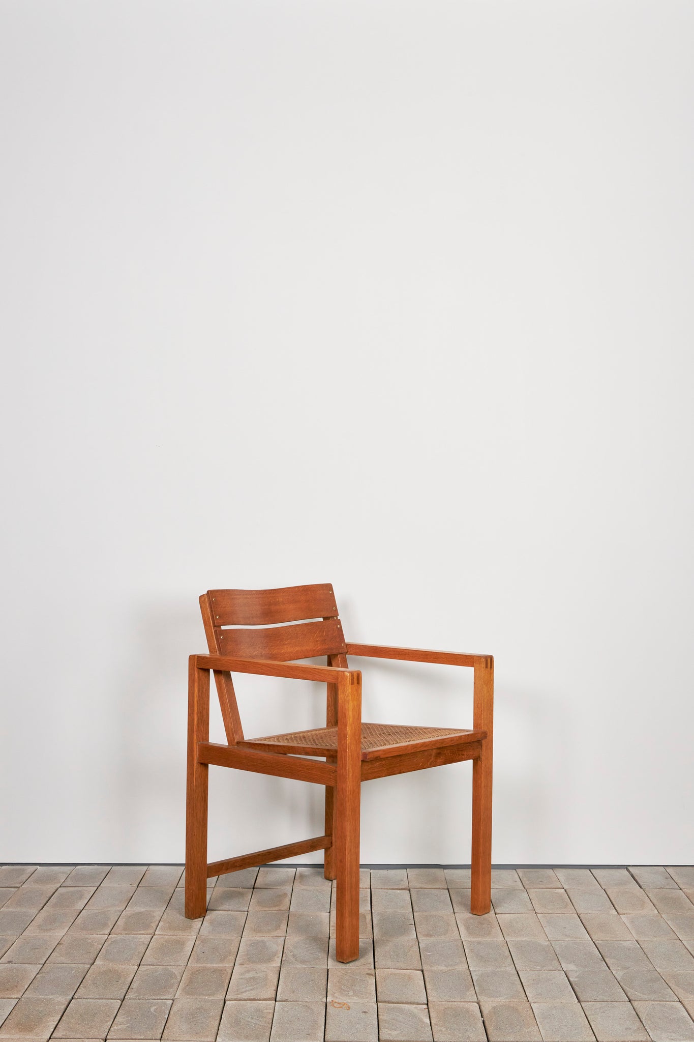 このアームチェアは、機能性と標準化の理念を体現するものであり、ディックマンの特徴である無垢材、籐編み、幾何学的な構造体が見て取れます。交差する線と面によって構成される軽やかで開放的なデザインは、1928年にマルセル・ブロイヤーが言及した通り、ディックマンの家具の魅力でもあります。