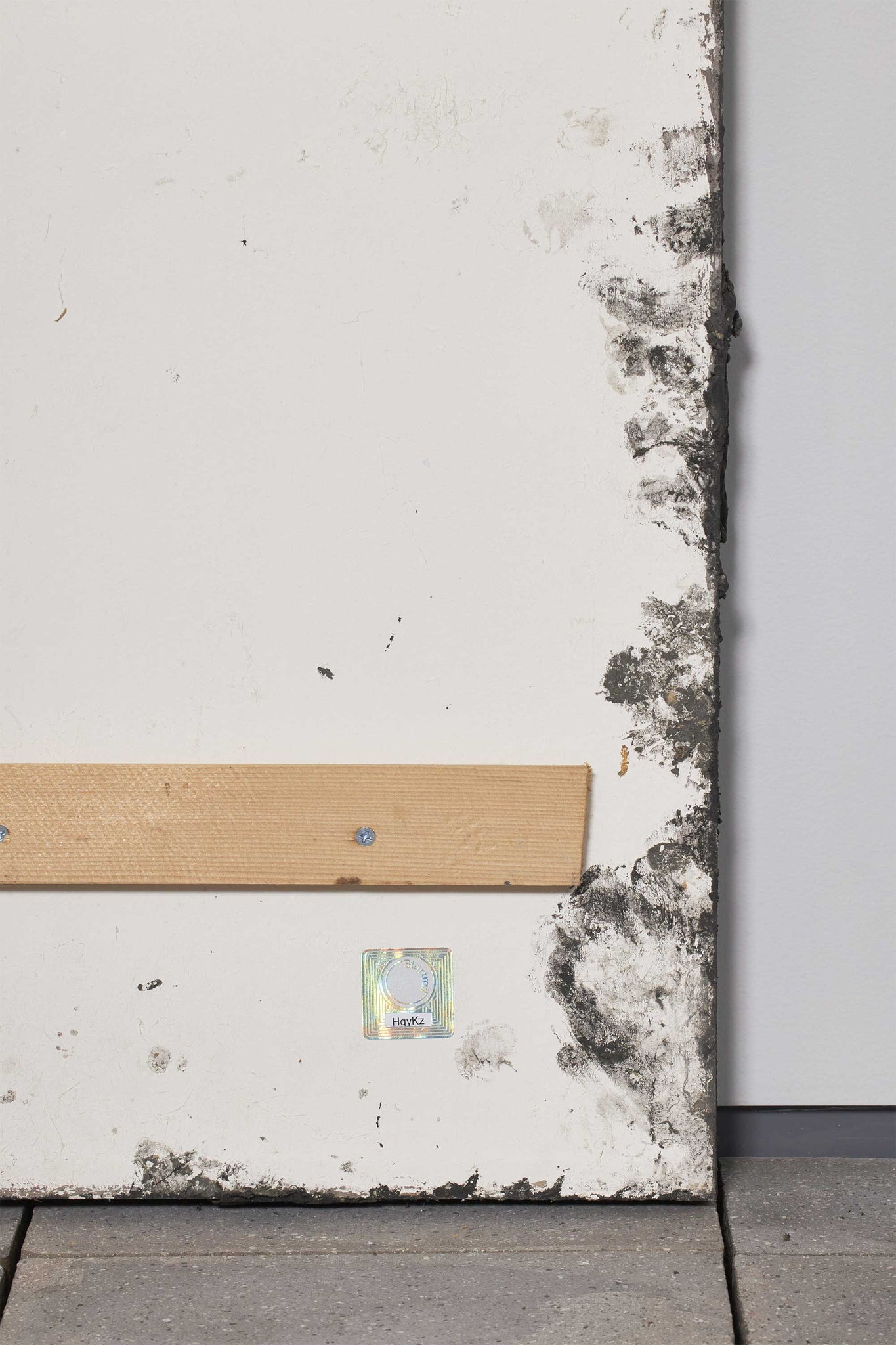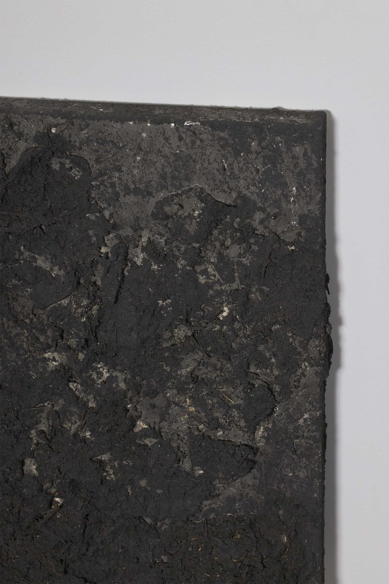 和紙や土、顔料などが幾重にも重なり、年月をかけて “積み重なってきたもの” の美しさを表現。設置する場所の光加減によって、幾通りにも色味や風合いの違いを感じることができます。ホロホロと剥がれてしまいそうな素材の儚さが、とても印象的な1枚。