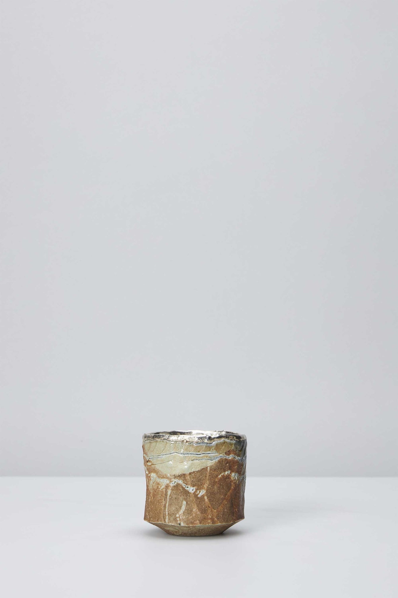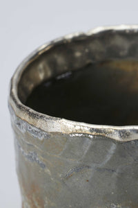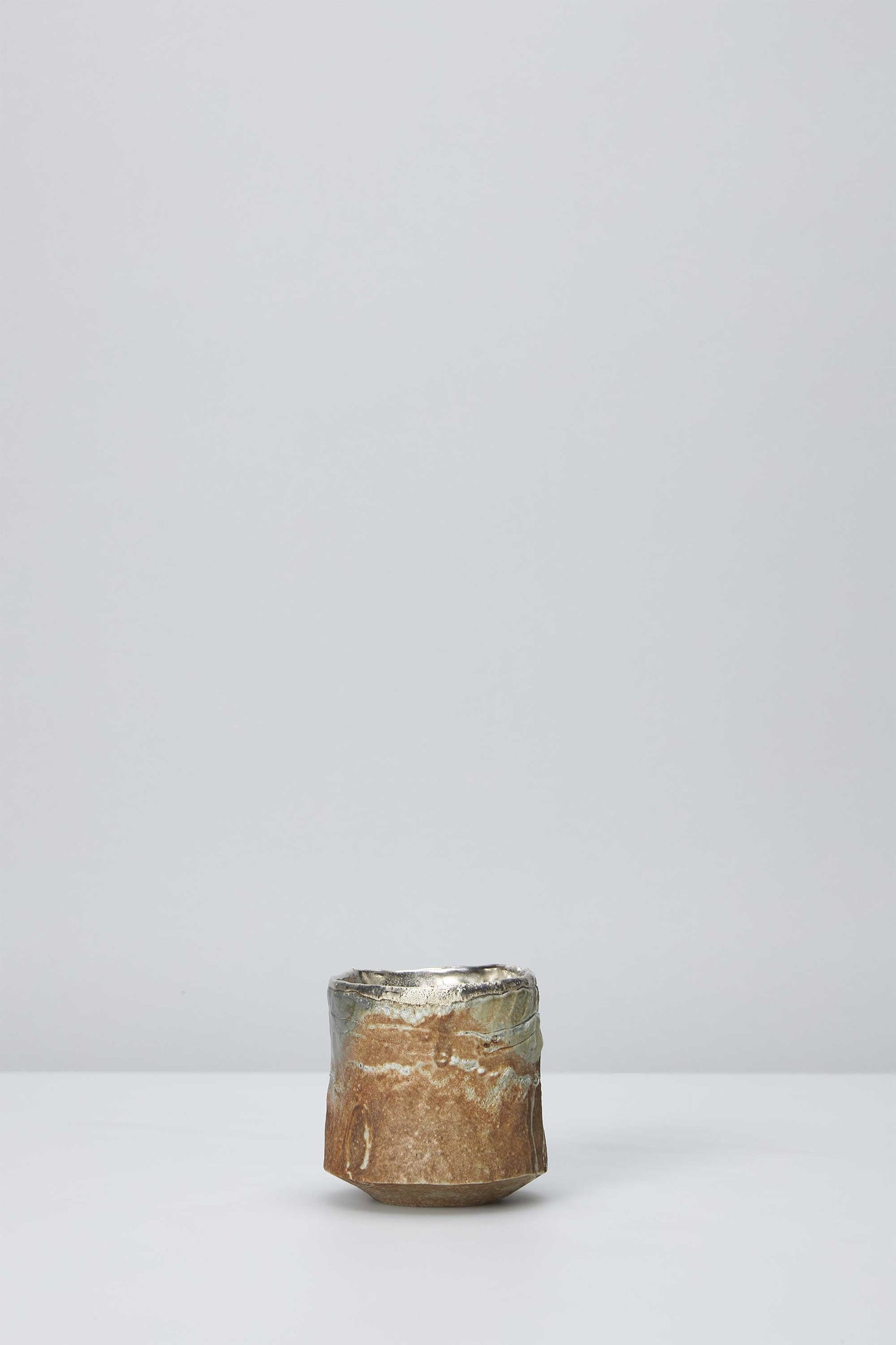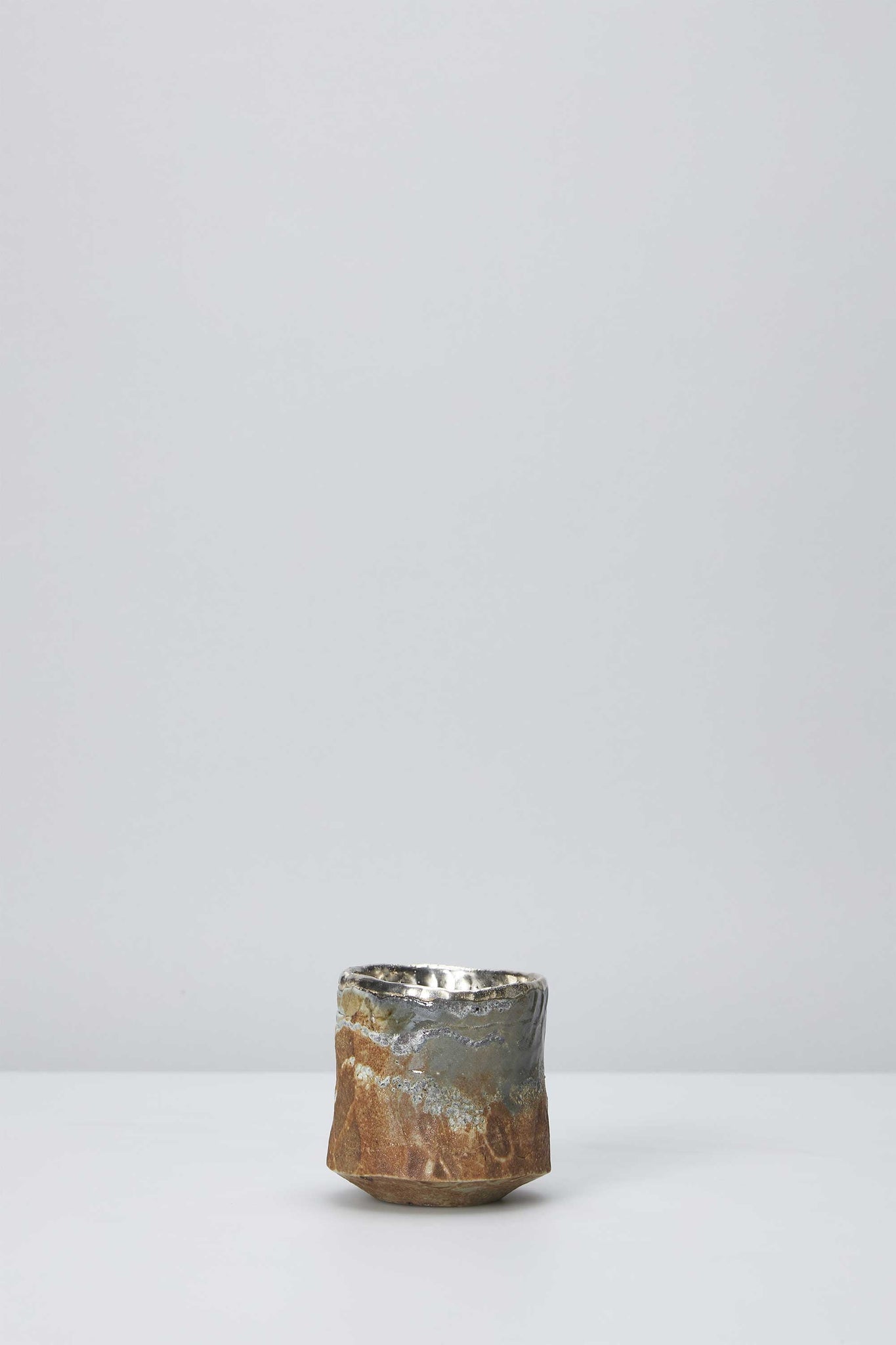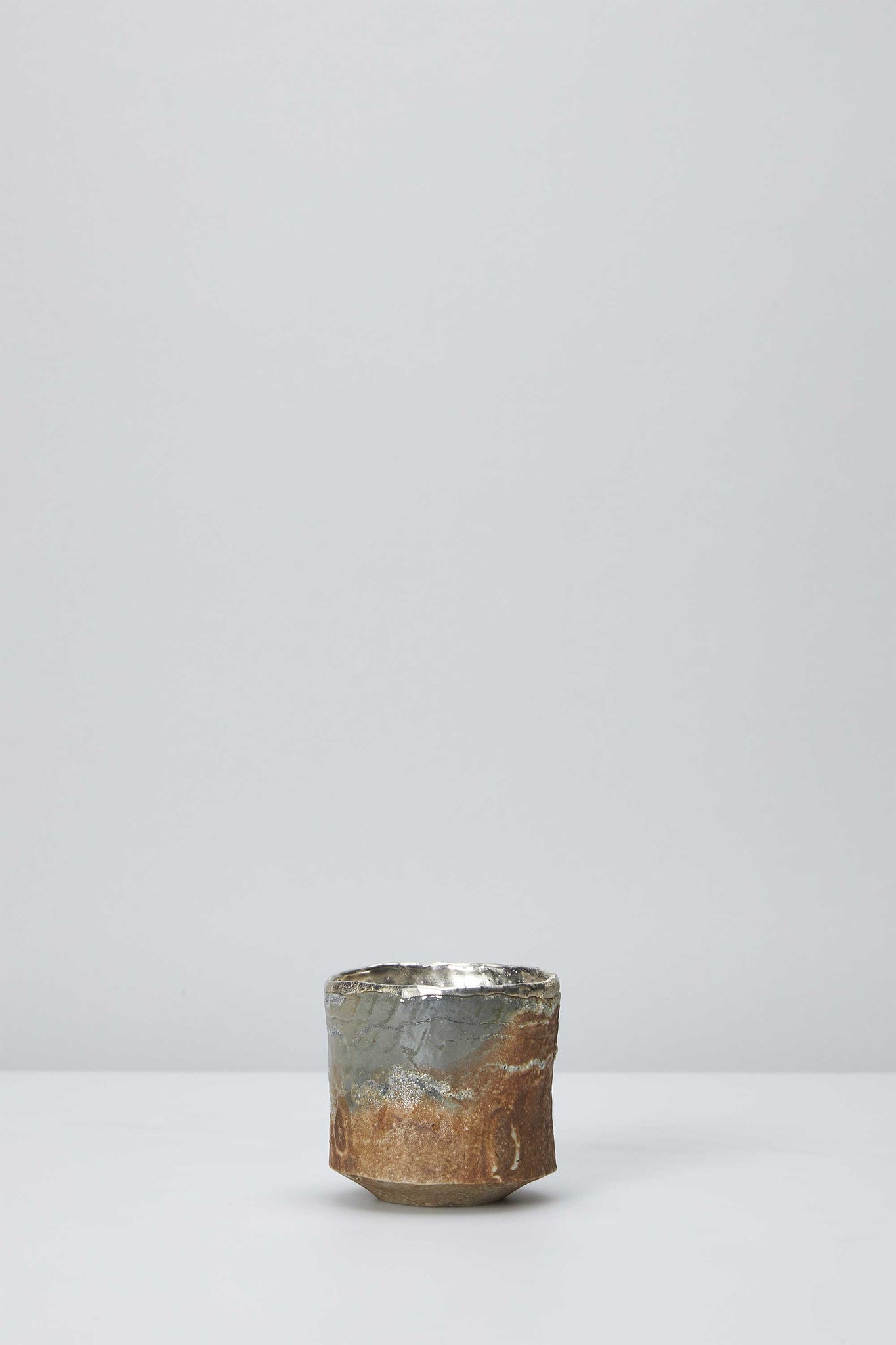 歪みやひび割れといった、荒々しくも繊細な美しさを表現してきた中井波花氏の、湯呑みシリーズ。