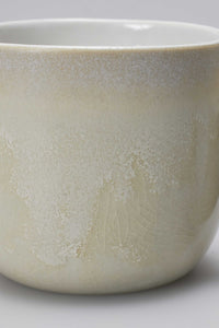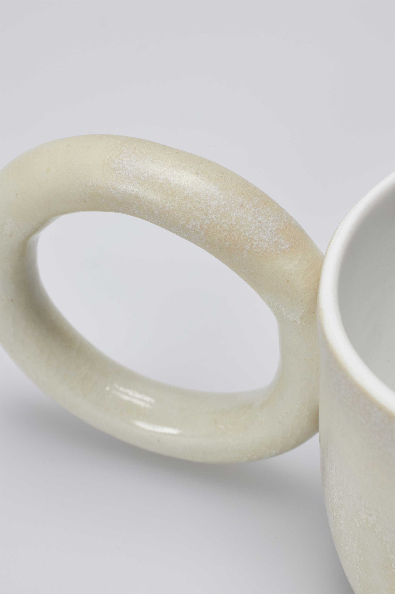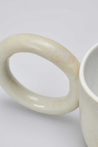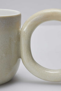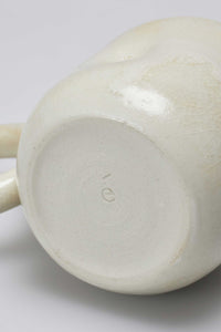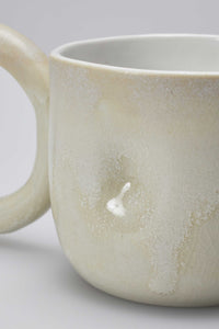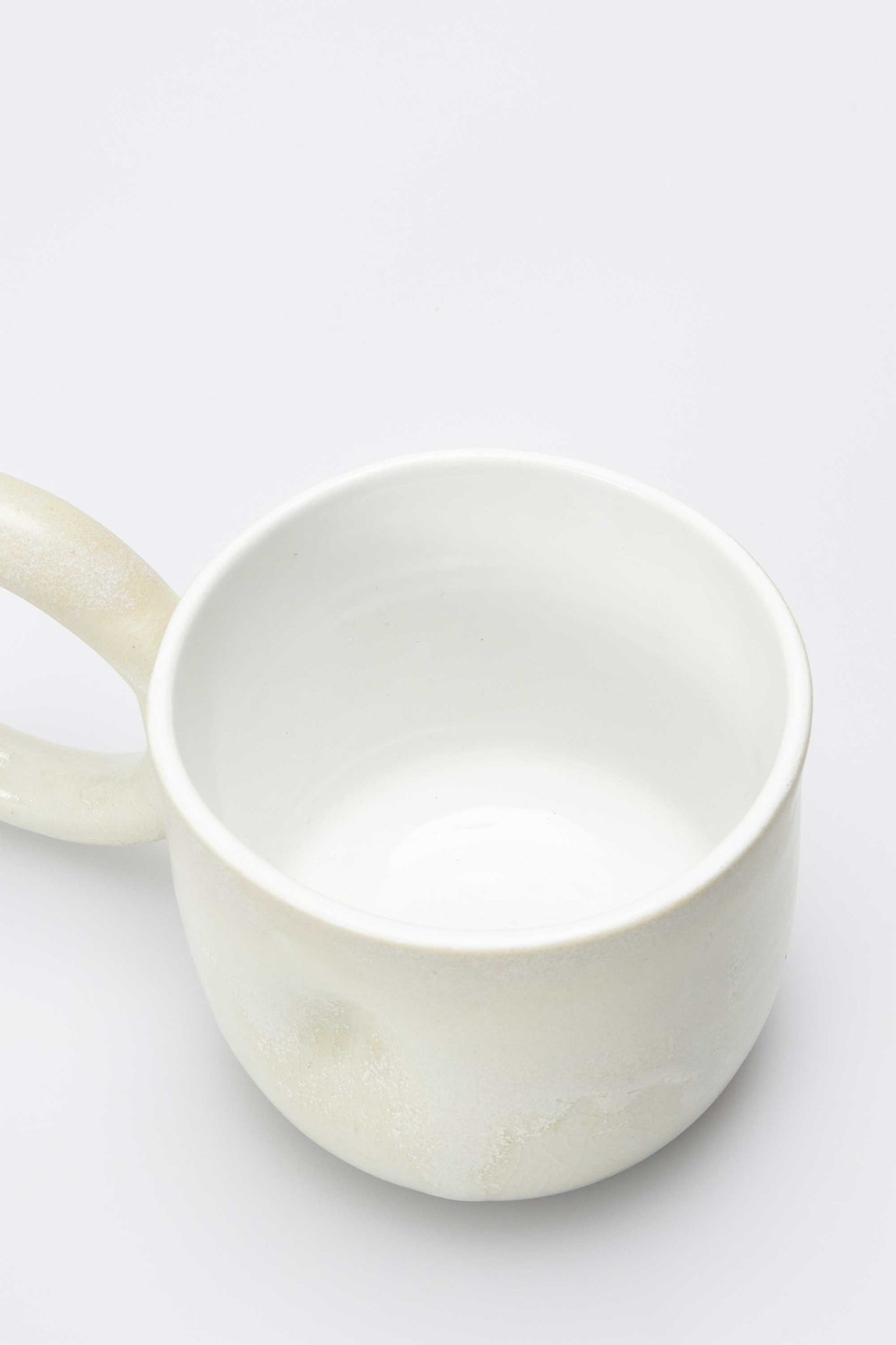 カップ部分の指を添えるための“おへそ”のようなくぼみは、マグを両手で包み込むように持ったときに手に馴染み、また、土の質感や温度、滑らかさを直に感じていただけます。